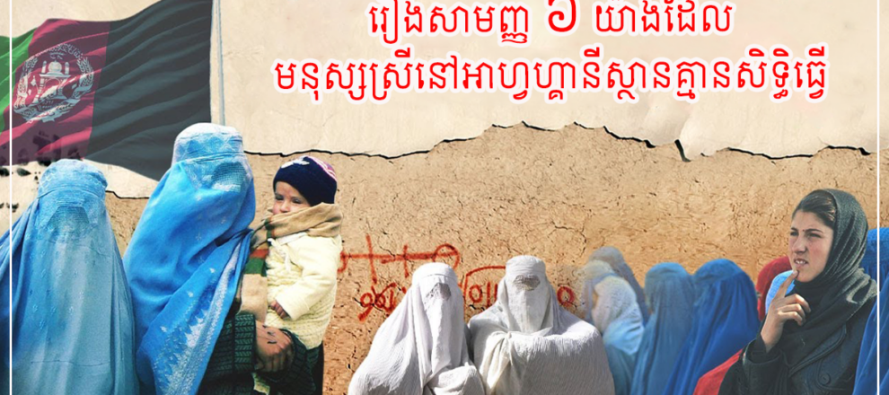 នៅក្នុងព្រះគម្ពីរនៃសាសនាឥស្លាមបានចែងថាស្ត្រីមានសិទ្ធិរើសស្វាមីនិងអាចធ្វើការបាន តែសកម្មភាពរបស់ពួកតាលីបង់ដែលបានគ្រប់គ្រង អាហ្វហ្គានីស្ថានកន្លងមកបង្ហាញឲ្យឃើញពីការគាបសង្កត់ទៅលើស្ត្រីយ៉ាងខ្លាំង។ ទាំងនេះគឺជារឿងទាំង៦យ៉ាងដែលស្ត្រីនៅអាហ្វហ្គានីស្ថានមិនមានសិទ្ធិធ្វើ៖