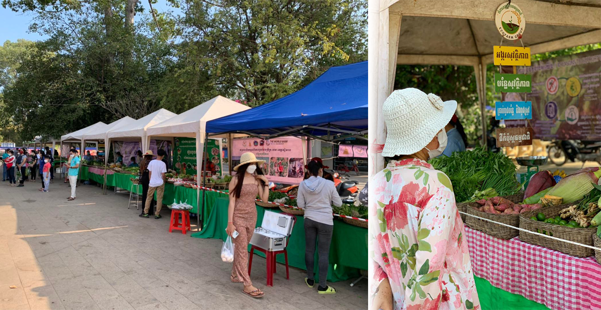 នៅរាល់ថ្ងៃសៅរ៍-អាទិត្យ ពីម៉ោង ៦:០០ ព្រឹក ដល់ម៉ោង ១១:០០ ថ្ងៃត្រង់នាបរិវេណទីធ្លា សាធារណៈ ប្របដងស្ទឹងសៀមរាប មិនឆ្ងាយពីព្រះរាជដំណាក់ អ្នកអាចចាប់អារម្មណ៍ឃើញមានស្តង់ពណ៌សជាច្រើន
