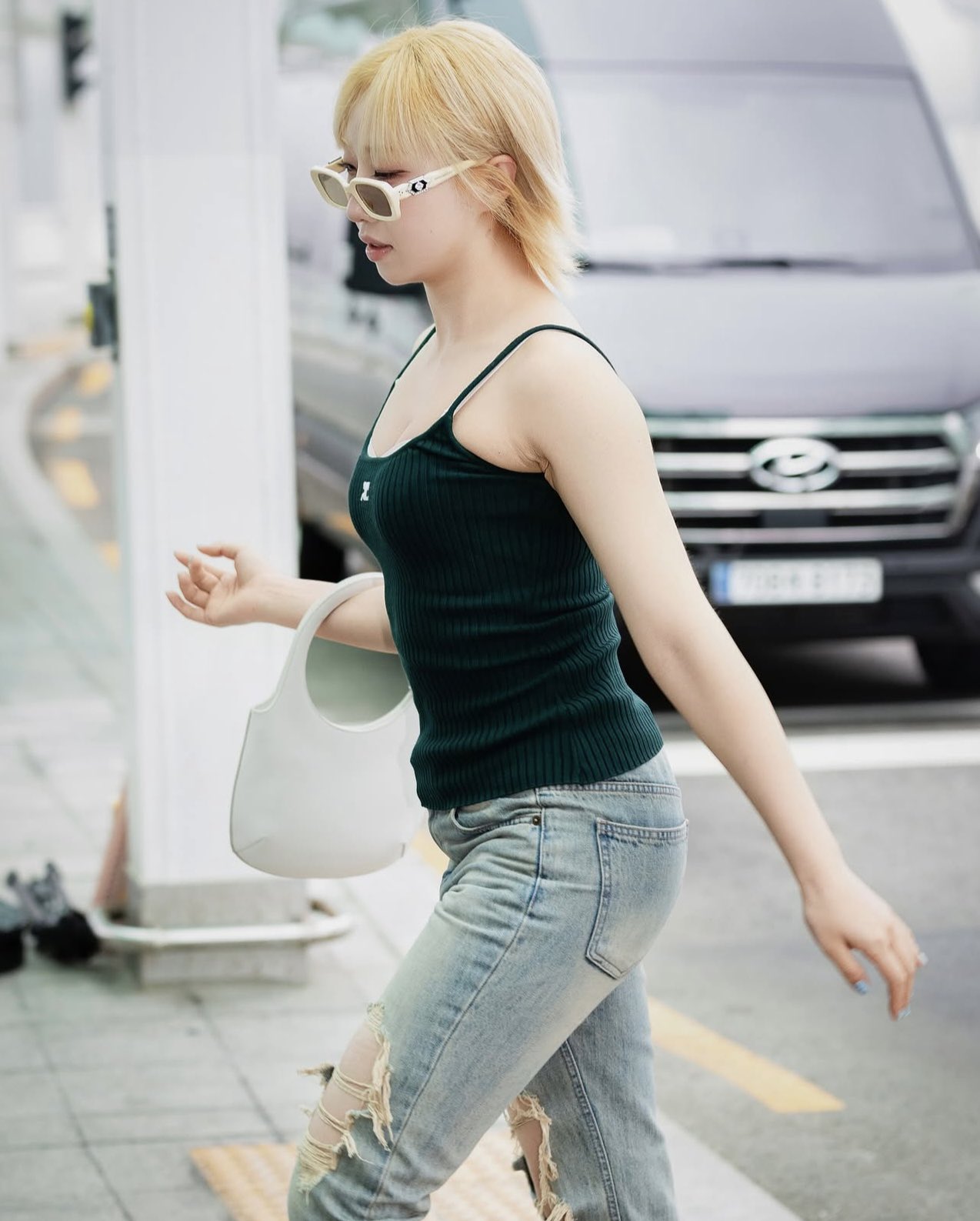 សម្រាប់កូនពៅប្រចាំក្រុមវិញ Minzy បានជ្រើសរើសអាវ និងកាបូបពីម៉ាក Courrèges ដោយអាវកាក់នេះមានតម្លៃ ៣៩០ដុល្លារអាមេរិក ទន្ទឹមគ្នានឹងកាបូបពណ៌សតម្លៃ ១០០០ដុល្លារអាមេរិក។ តារាស្រីវ័យ ៣១ឆ្នាំ រូបនេះបានតុបតែងខ្លួនបន្ថែមដោយ វ៉ែនតាខ្មៅពីម៉ាកហ្វេសសិនក្នុងស្រុក គឺ Gentle Monster មានតម្លៃ ៣៨ម៉ឺនវ៉ុន ឬ ២៨០ដុល្លារអាមេរិក៕