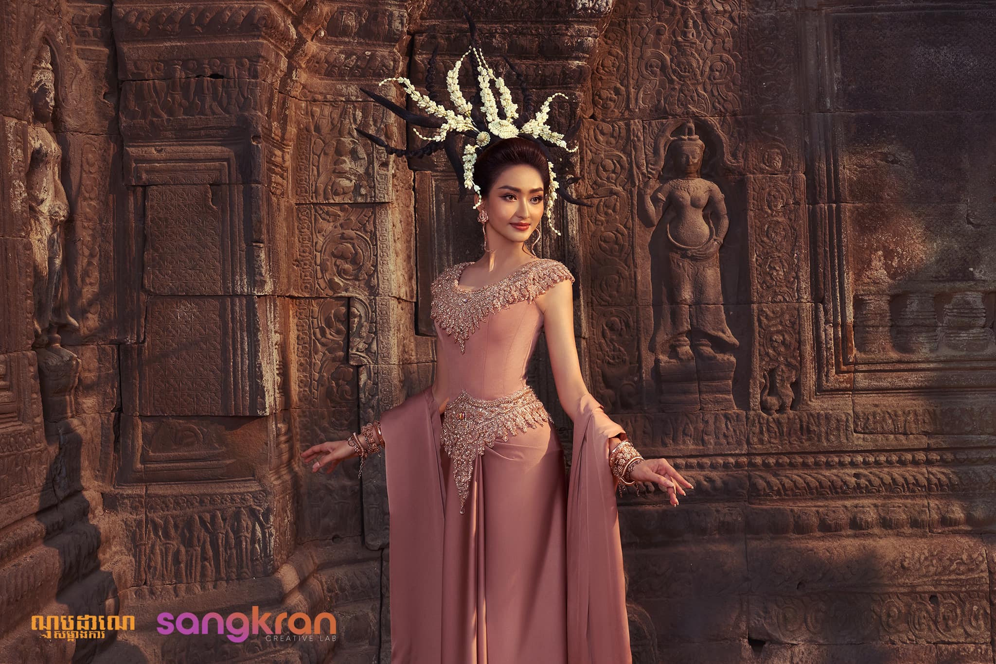 សូមជម្រាបថា ស្នាដៃសិល្បៈបង្កើតថ្មីដែលគ្មានឈ្មោះ តែស្ទូឌីយូ Sangkran Creative Lab ហៅថា «ស្រីសួគ៌» ច្នៃឡើងយ៉ាងប្រណីតផ្ចិតផ្ចង់ដោយ ណុប ដាណេ សម្អាងការ, Art Director ដោយលោក Theanea Amnath និងថតរូបដោយ Sangkran Creative Lab៕