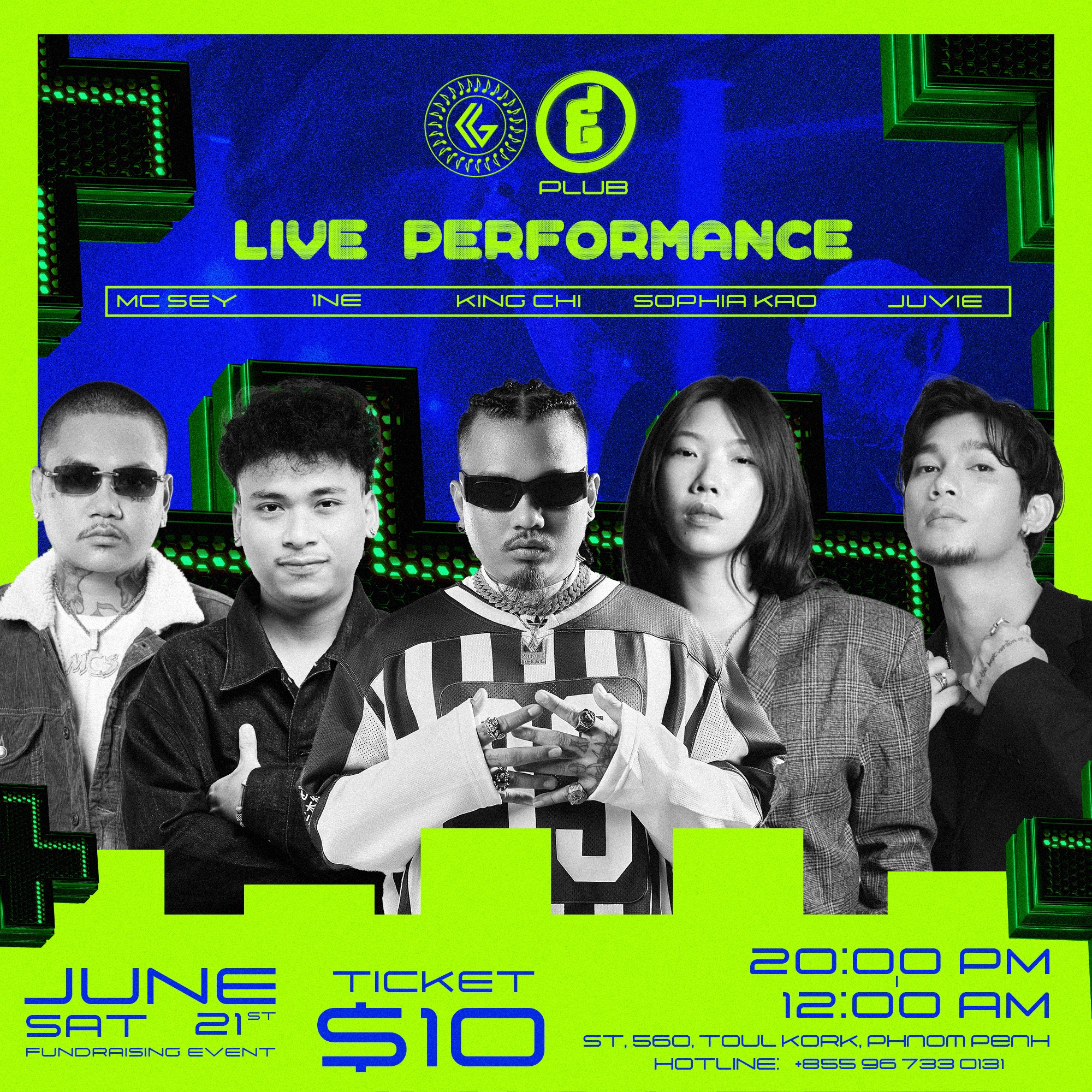 តែ​ទោះ​ជា​យ៉ាង​នេះ​ដោយ​សារ​តែ​ថ្លៃ​ព្យាបាល​មាន​តម្លៃ​ខ្ពស់​ណា​មួយ​ភរិយា​របស់​លោក​ក៏​តម្រូវ​ត្រូវ​វះ​កាត់ ​ដើម្បី​ប្ដូរ​ក្រលៀន​ថ្មី​ទើប​បណ្ដា​សិល្បករ​ក្នុង​វិស័យ​រ៉េប​ដែល​មាន​ដូច​ជា កញ្ញា KAO SOPHIA , JUVIE , MC SEY ,1 NE និង King Chi ដែល​អ្នក​ទាំង​ប្រាំ​បាន​រៀបចំ​ការ​ប្រគំតន្ត្រី​ខ្នាត​តូច​នៅ​ក្នុង​ទីតាំង 9-ណែន Plub ទួល​គោក ដោយ​ក្នុង​សំបុត្រ​ទស្សនា​មាន​តម្លៃ ១០ ដុល្លារ។ សម្រាប់​ថវិកា​ដែល​រក​បាន​ពី​ការ​លក់​សំបុត្រ​ទាំង​អស់​នឹង​ធ្វើ​ការ​ប្រគល់​ជូន​ទៅ​ឱ្យ​លោក King Chi ដើម្បី​យក​ទៅ​វះ​កាត់​ផ្លាស់​ប្ដូរ​ក្រលៀន​ថ្មី​ឱ្យ​ភរិយា​របស់​លោក៕