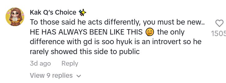 ដូចគ្នាដែរ អ្នកគាំទ្ររបស់ Lee Soo-hyuk មួយចំនួនទៀត ក៏បានចេញមកចែករំលែកដែរថា លោកគឺជាមនុស្ស Introvert ហើយនេះគ្រាន់តែជាមួយជ្រុងទៀតរបស់តារាប្រុស ដែលលោកមិនងាយបង្ហាញនៅក្នុងទីសាធារណៈកន្លងមក៕