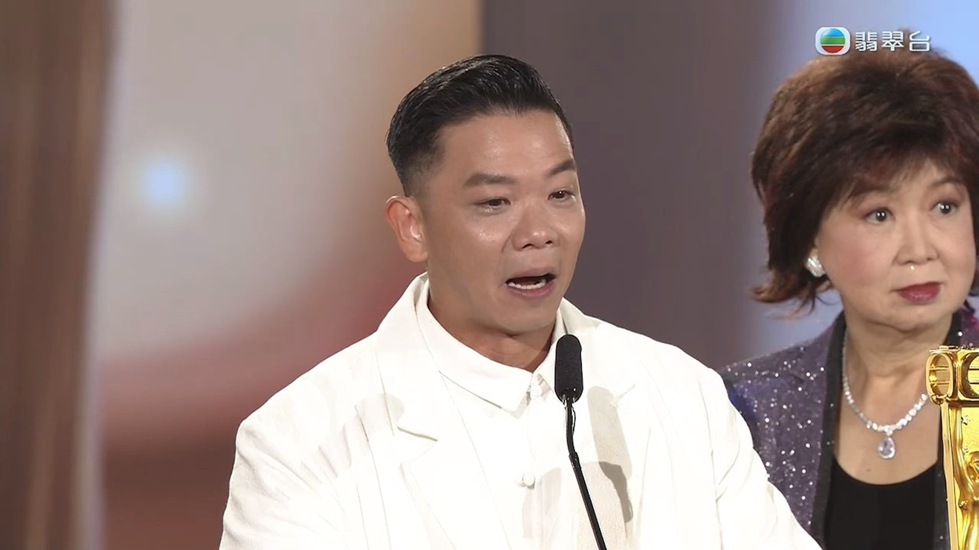 ជាមួយគ្នាដែរ នៅពេលឡើងទៅដល់ឆាកដើម្បីទទួលពានរង្វាន់ តារាប្រុស Alex Lam បានលុតជង្គង់ឱនគោរពអ្នកមានគុណរបស់លោកភ្លាមៗ តែម្ដង។ លោកបាននិយាយទាំងទឹកភ្នែកថា៖ អរគុណដល់ឳពុកម្ដាយរបស់លោកដែលផ្ដល់កំណើតដល់លោក ទើបលោកអាចមានថ្ងៃនេះ។ លោកក៏បានអរគុណដល់មិត្ដរួមការងារជាច្រើនដែលជួយជ្រោមជ្រែង ផ្ដល់ឱកាស និងតែងតែលើកទឹកចិត្ដដល់លោកជានិច្ច។