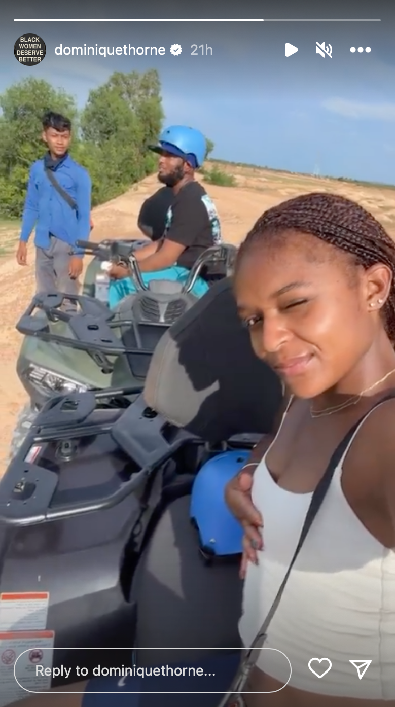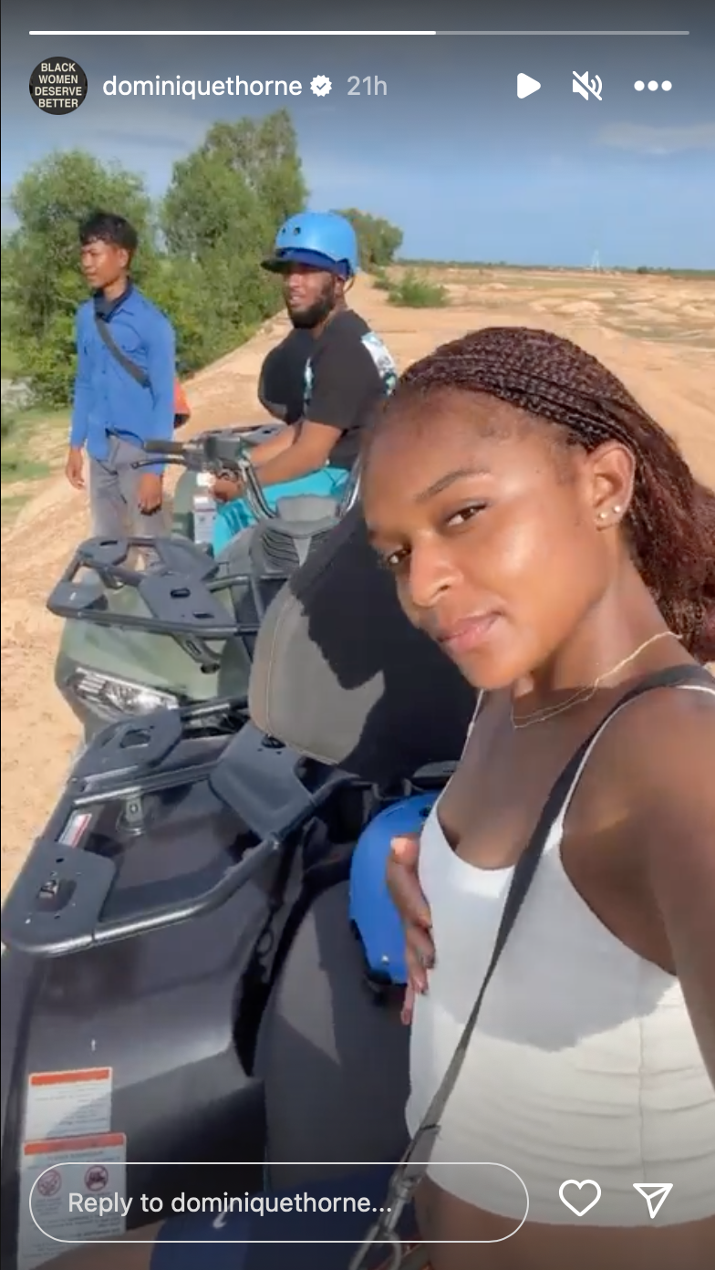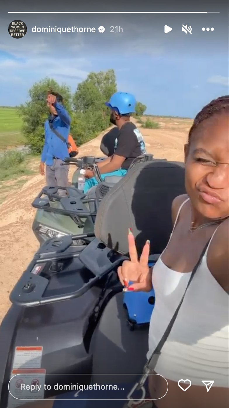 ពេលមកទីនេះ តារាសម្តែងអាមេរិក Dominique Throne ក៏បានបង្ហោះទិដ្ឋភាពវាលស្រែខ្មែរ ដែលនាងបានជិះកម្សាន្តលេងនោះក្នុង story អ៊ីនស្រ្តាក្រាមរបស់នាងផងដែរ៕
