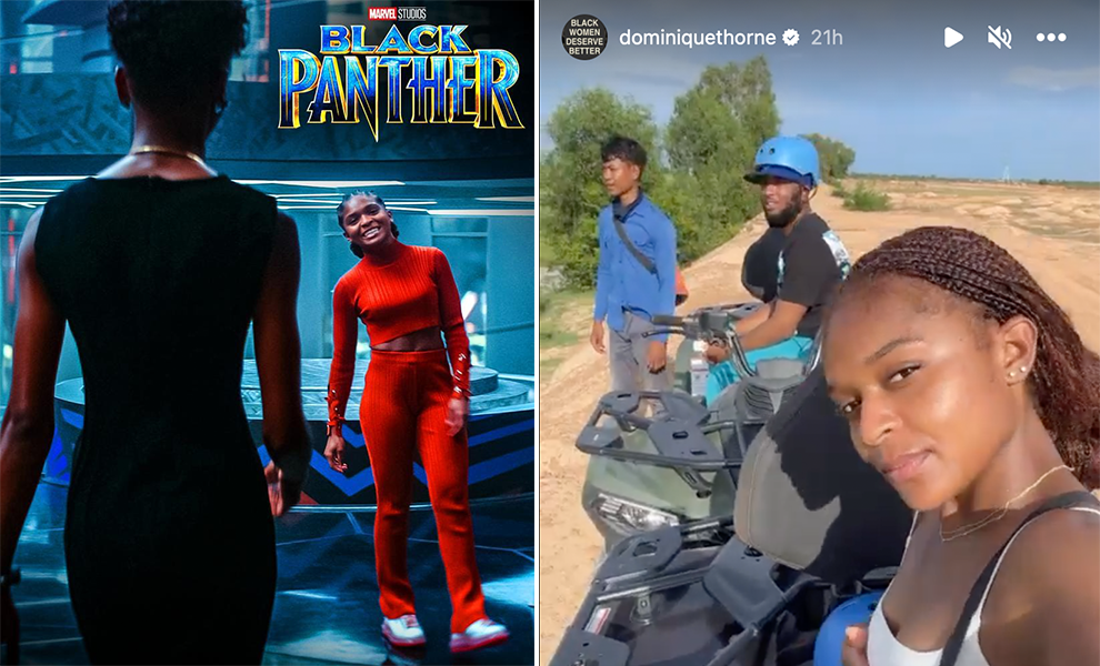 ពិតជាភ្ញាក់ផ្អើលខ្លាំងមែនទែនដែលថ្មីៗនេះអ្នករស់នៅទឹកដីខេត្តសៀមរាប ស្រាប់តែឃើញតារាសម្តែងអាមេរិក Dominique Throne ដែលជាអង្គក្នុងរឿង Black Panther “WAKANDA FORVERE” មកដើរលេងនៅទឹកដីខេត្តសៀមរាប ប្រទេសកម្ពុជា។ មិនតែប៉ុណ្ណោះ នាងនិងមិត្តភ័ក្តថែមទាំងបានជិះម៉ូតូ Quad ដើរលេងតាមវាលស្រែនៅសៀមរាប យ៉ាងសប្បាយរីករាយថែមទៀតផង។