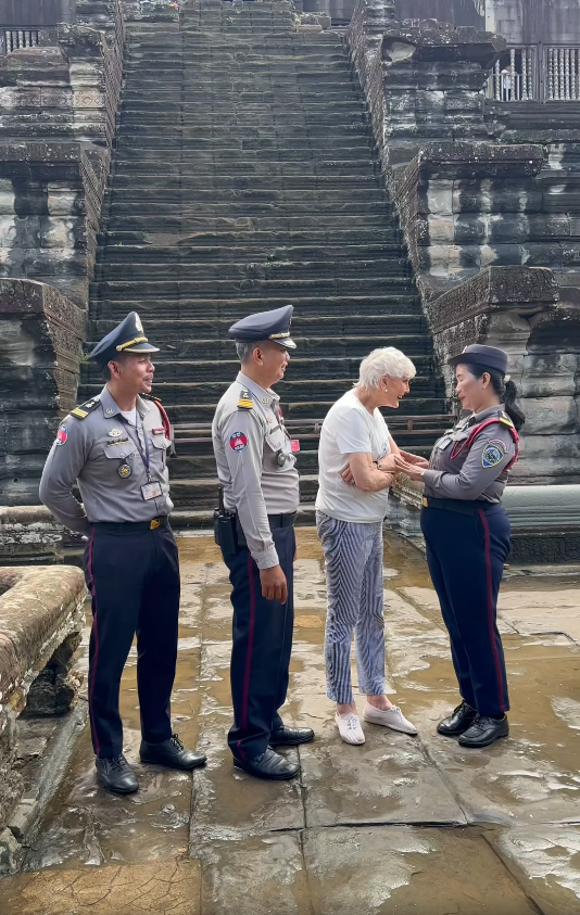 អ្នកស្រី Angela Rippon បានធ្វើដំណើរមកទស្សនាប្រាសាទអង្គវត្ត ហើយក៏បានជួបជាមួយមន្ត្រីនគរបាលទេសចរណ៍កម្ពុជា ព្រមទាំងបានសំណេះសំណាលគ្នា។ អ្នកស្រី Angela Rippon បង្ហាញអារម្មណ៍រំភើប ក្រោយឮមន្ត្រីនគរបាលទេសចរណ៍កម្ពុជា ហៅឈ្មោះខ្លួនយ៉ាងច្បាស់។
