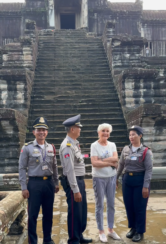 Angela Rippon ជាស្ត្រីគួរឲ្យស្រលាញ់ ហើយក៏រួសរាយរាក់ទាក់ ផ្ដល់ទាំងស្នាមញញឹម និងសំណើចដល់មន្រ្តីខ្មែរ គ្រាដែលជួបគ្នាកាលពីថ្ងៃ ១៦ ខែកញ្ញា ឆ្នាំ ២០២៥ កន្លងទៅនេះ។ ងាកទៅមើល Instagram របស់ Angela Rippon អ្នកស្រីក៏បានបង្ហាញពីវីដេអូ ដែលមន្រ្តីមន្ត្រីនគរបាលទេសចរណ៍កម្ពុជា បង្ហោះ ហើយថាបានជួបជាមួយអ្នកគាំទ្រខ្លួននៅកន្លែងមិននឹកស្មានដល់។