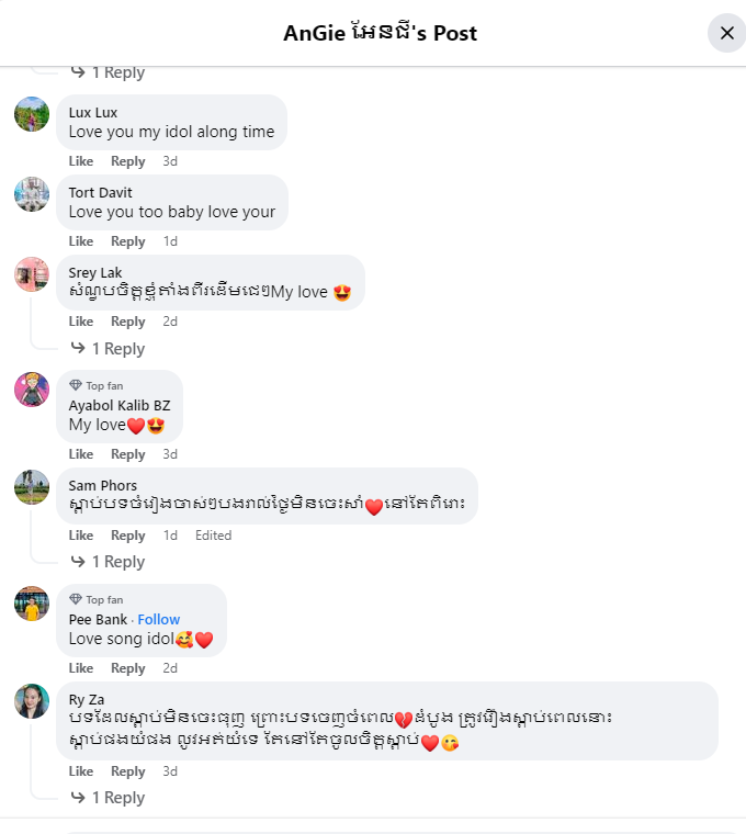 ច្រើនឆ្នាំមកនេះ ហ្វេនៗរបស់ម្ចាស់បទ «ទេវតាមានភ្នែក» នៅតែនឹករឭកដល់សំឡេងដ៏ស្រទន់បង្កប់ដោយភាពឈឺចាប់របស់តារាស្រីរូបនេះ និងបន់ឱ្យនាងទម្លាក់បទចម្រៀងថ្មីៗវិញឱ្យបានឆាប់ៗ ព្រោះពួកគេនឹករឭកទឹកដមសំនៀងនាងខ្លាំងណាស់។