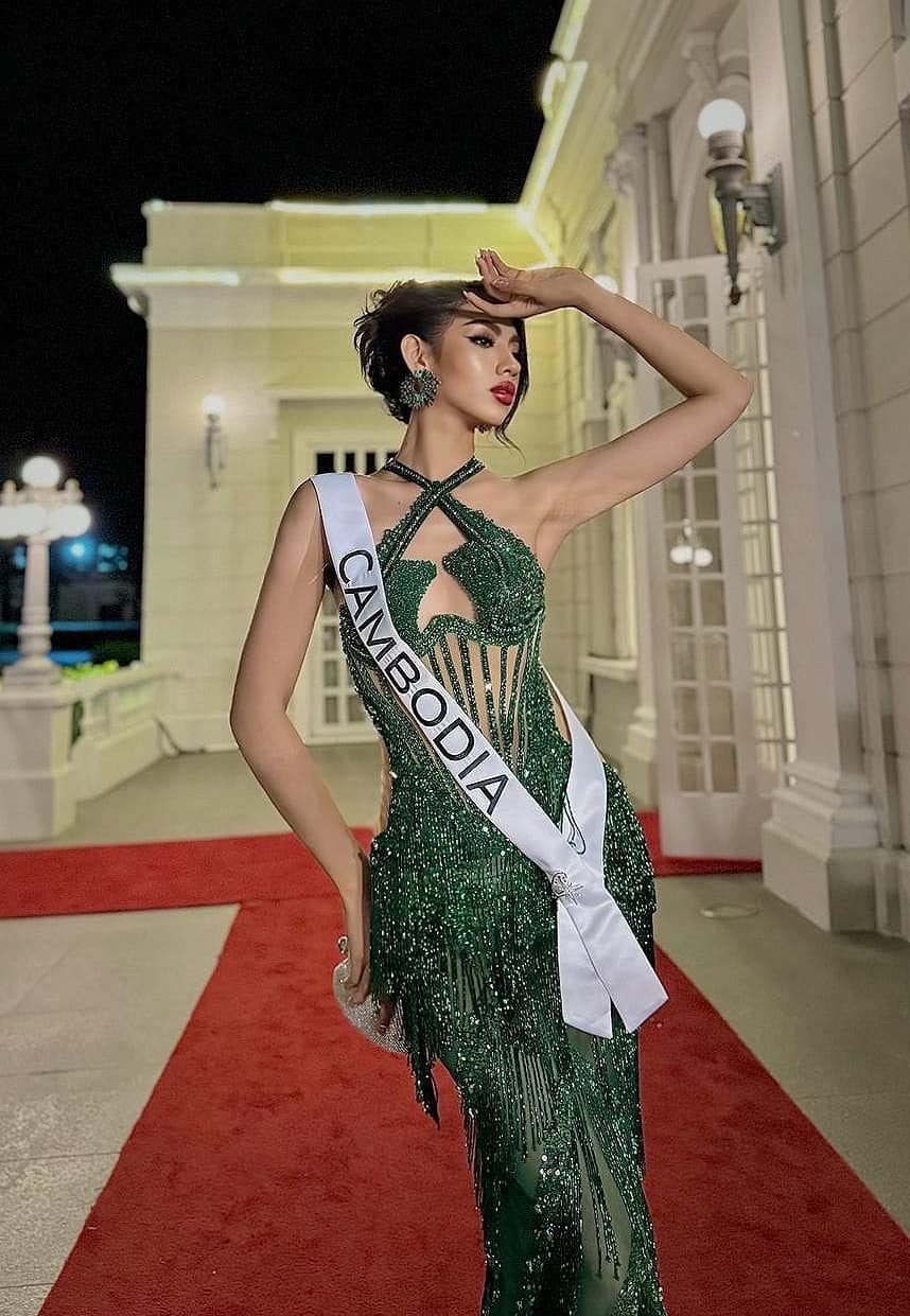 កាលពីយប់មិញនេះដែរ Miss Universe Cambodia 2023 មានកិត្តិយសបានចូលរួមកម្មវិធី Gala Dinner ជាមួយប្រធានាធិបតីអែលសាវ៉ាឌ័រ។ បវរកញ្ញាកម្ពស់ ១,៨២ ម៉ែត្ររូបនេះបានជ្រើសរើសរ៉ូបពណ៌បៃតងចាស់ មានរំលេចត្បូង អង្កាំភ្លឺផ្លេក ព្រមទាំងធ្វើសក់បួងឡើងទៅលើ បញ្ចេញសម្រស់ស្រស់ផូរផង់៕