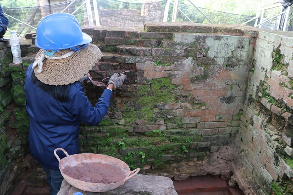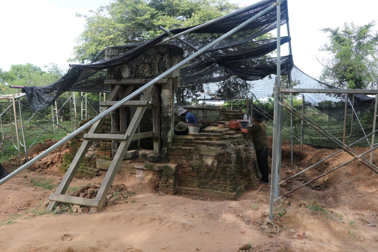 ក្នុងដំណើរការជួសជុលប្រាសាទឥដ្ឋមួយនេះ អ្នកជំនាញបានចាប់ផ្តើមធ្វើការសិក្សាសម្រង់ប្លង់នៃប្រាសាទ និងធ្វើការពង្រឹងខឿនជញ្ជាំងឱ្យមានលំនឹង ទប់ស្កាត់ការរលុះ ធ្លាក់ធ្វើឱ្យបាត់បង់រូបរាងដើមរបស់ប្រាសាទ។ បន្ទាប់មក ធ្វើការសម្អាត បិទបាយអភ្ជាប់តាមស្រទាប់រហែក ដើម្បីការពារជ្រាបទឹកធ្វើយ៉ាងណាឱ្យតួប៉មនៃប្រាសាទនេះ មានភាពរឹងមាំឡើងវិញ។