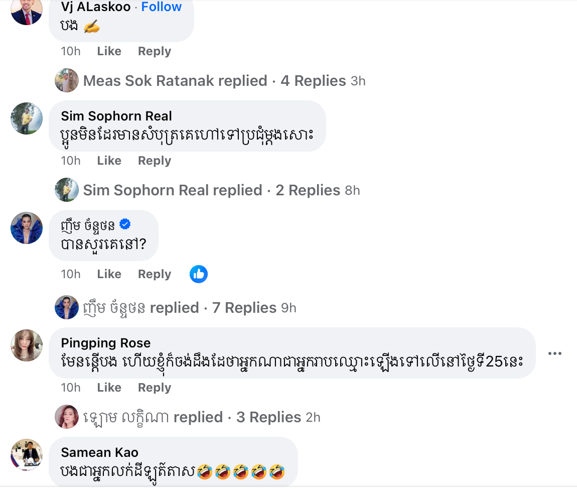 យ៉ាងណាមិញ គេពុំទាន់ដឹងថា អ្នកនិពន្ធទំនុកច្រៀង មាស សុខរតនៈ អាចនឹងត្រូវអញ្ញើញឱ្យចូលរួមកម្មវិធីបន្ទាប់ពីបង្ហោះ status នេះដែរឬយ៉ាងណាទេ? មានតែរង់ចាំតាមដានការ update លើគណនី Meas Sok Ratanak ទាំងអស់គ្នា!