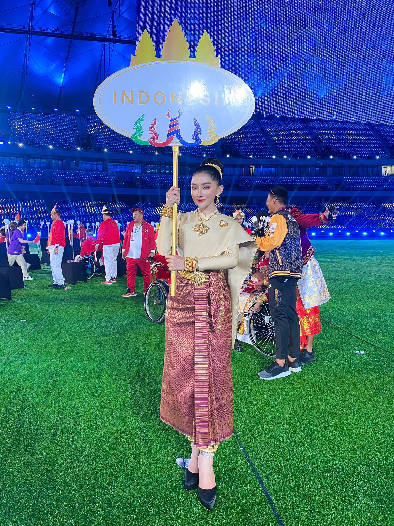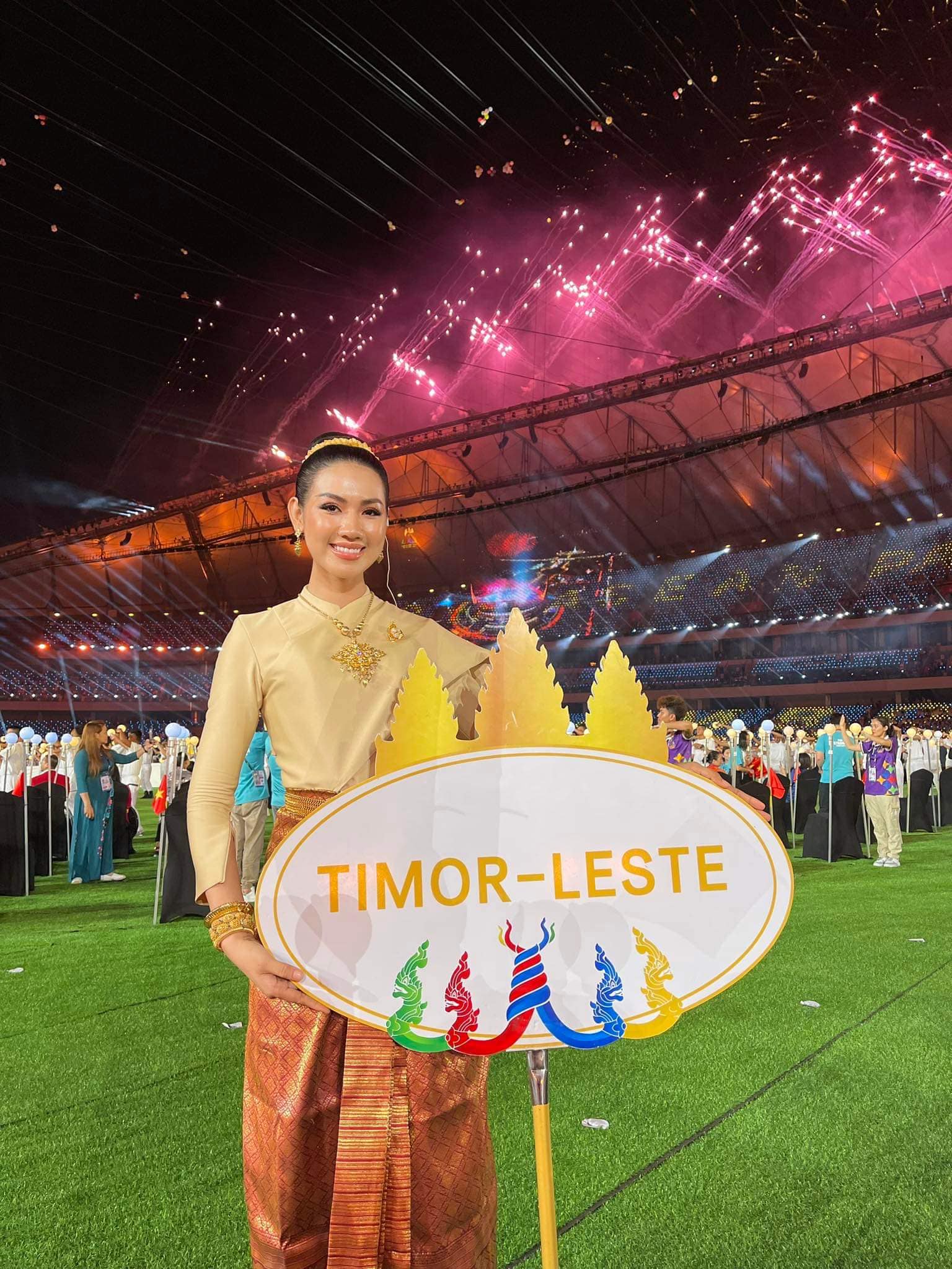 នៅថ្ងៃនោះ ក្រៅពីការរៀបចំដ៏គួរឲ្យទាក់ទាញហើយ មហាជនបានចាប់អារម្មណ៍ចំណុចពិសេសមួយ គឺនារីមគ្គុទ្ទេសក៍តំណាងប្រទេសទាំង ១១ រូបជាតារាស្រីវ័យក្មេង និងកំពុងទទួលបានការចាប់អារម្មណ៍ខ្លាំងក្នុងស្រទាប់មហាជន។ ក្នុងសម្លៀកបំពាក់បុរាណ ព្រមទាំងគ្រឿងអលង្ការខ្មែរ ពិសេសបំផុតគឺភួងផ្ការំដួលលើសក់ ស្រស់ស្អាតខ្លាំង ពិបាកនឹងបរិយាយ។ បូករួមទឹកមុខញញឹមពព្រឹម បានធ្វើឲ្យសំឡេងស្រែកហ៊ោកញ្ជ្រៀវលាន់កងរំពងពហុកីឡដ្ឋានជាតិមរតកតេជោ។