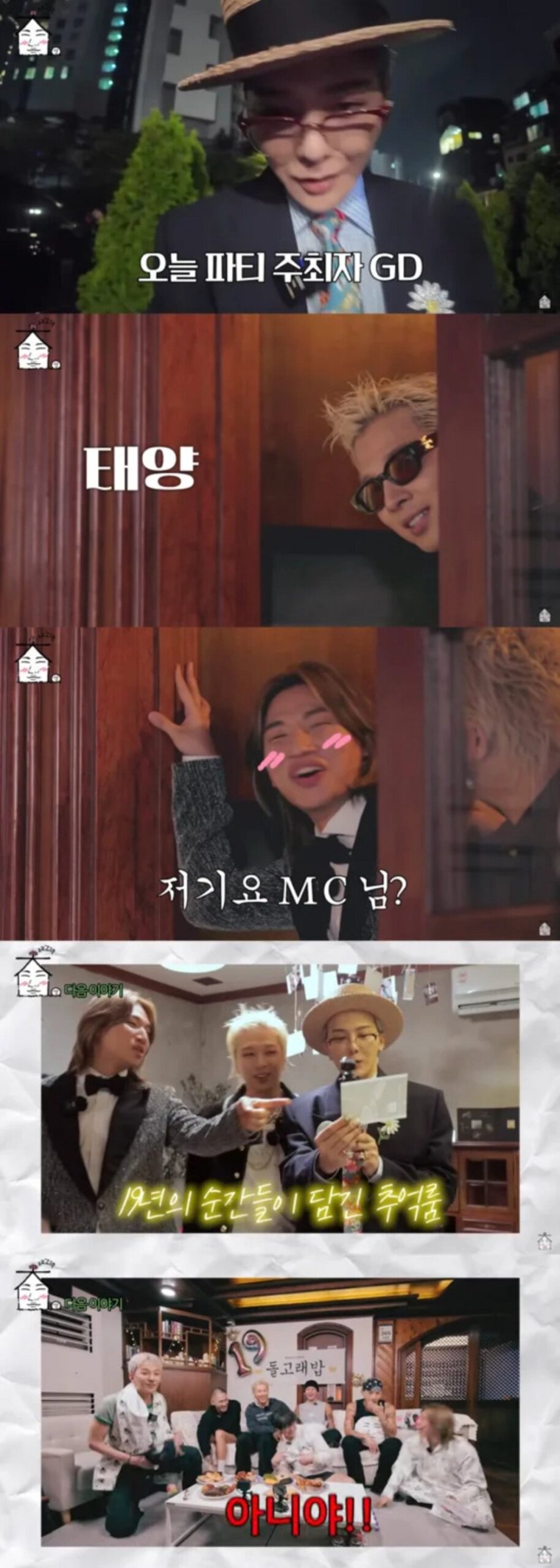 វីដេអូខ្លីៗនេះបានចាប់ផ្ដើមដោយ G-Dragon ទទួលតួនាទីជាពិធីករជំនួស Daesung ដែលជាម្ចាស់ឆានែល។ G-Dragon បានណែនាំពីមិត្តរួមក្រុមបែបលេងសើច ដោយបានរៀបរាប់ពី Taeyang ថា “គាត់ពោរពេញដោយមន្តស្នេហ៍ ហើយតែងតែរះលើឆាក ប៉ុន្តែក៏ជាមនុស្សពិសេសបំផុតដែរ”។ ងាកទៅ Daesung G-Dragon និយាយបន្ថែមដោយញញឹមថា “មានរឿងច្រើនពេកហើយដែលត្រូវនិយាយអំពីបុរសម្នាក់នេះ… ដឹងត្រឹមតែគាត់ខិលទៅបានហើយ” ។