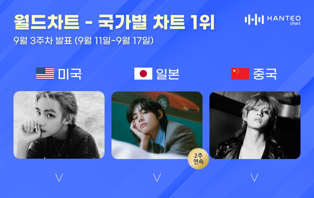 លើសពីនេះ V ថែមទាំងបានក្លាយជាសិល្បករទោលដំបូងគេដែលឈរនៅលើតារាង Hanteo Chart ក្នុងប្រទេសចំនួនបីដូចជា សហរដ្ឋអាមេរិក ជប៉ុន និងចិន។ ក្រោយការប្រកាសសមិទ្ធផលដ៏ធំរបស់តារាចម្រៀងប្រុសរូបសង្ហាររូបនេះហើយធ្វើឱ្យអ្នកគាំទ្រសម្ដែងអារម្មណ៍រីករាយជាមួយនឹងភាពជោគជ៏យរបស់លោកក្នុងនាមជាសិល្បករទោលដែលត្រូវបានគេទទួលស្គាល់ និងកោរសរសើរផងដែរ ៕