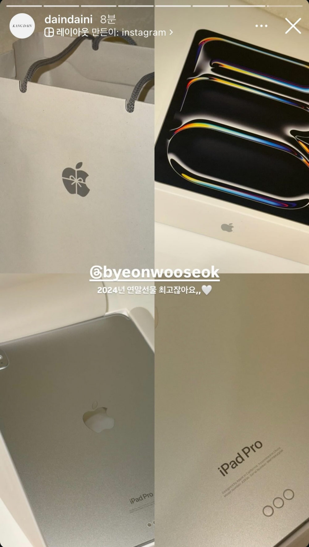 នៅថ្ងៃទី២៦ ខែធ្នូដែលទើបតែរំលងទៅនេះ អ្នកប្រើប្រាស់បណ្ដាញទំនាក់ទំនងសង្គមជាច្រើនរូបបានបង្ហាញការភ្ញាក់ផ្អើល ក្រោយពីមានក្រុមការងារព្រមទាំងជាងធ្វើសក់ និងផាត់មុខរបស់ Byeon Woo Seok បានចែករំលែករូបភាពកាដូដែលសិល្បកររូបនេះបានផ្ដល់ជូនពួកគេនៅចុងឆ្នាំ ២០២៤នេះ។