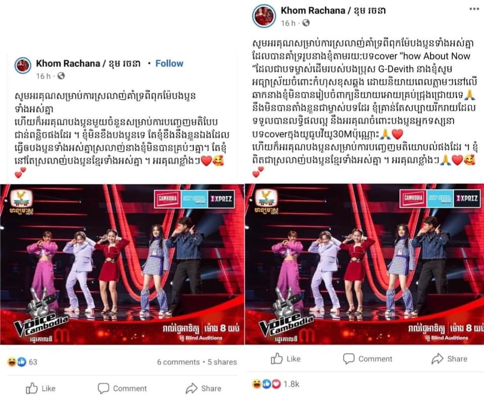 រឿងដែលបេក្ខភាព The Voice Cambodia រដូវកាលទី៣ សុខុម រចនា មិនឱ្យតម្លៃ ជី ដេវីត ដែលជាម្ចាស់ដើមបទ «How about now» នៅតែជាប្រធានបទក្តៅគគុកដែលអ្នកប្រើប្រាស់បណ្តាញសង្គមហ្វេសប៊ុក និងបណ្តាអ្នកលេង Tik Tok នាំគ្នាជជែកវែកញែករកហេតុផល។