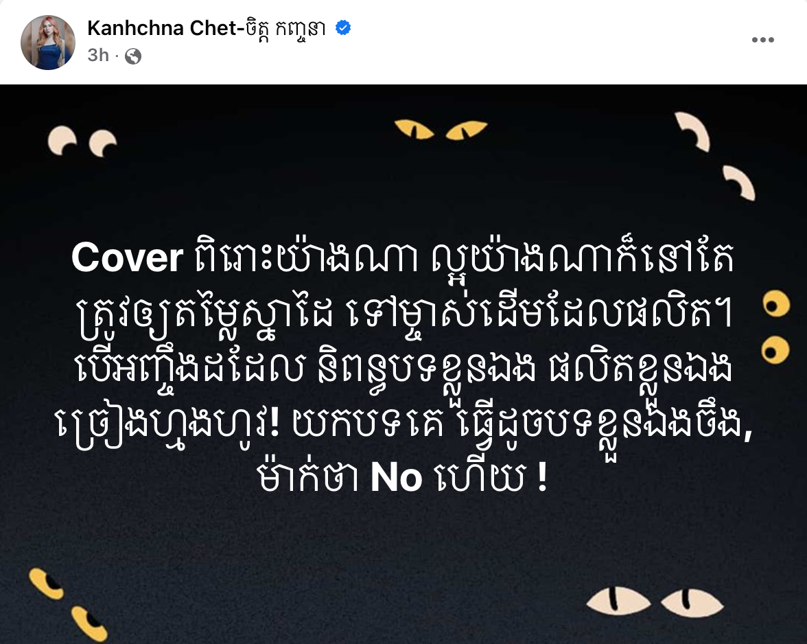 មិនត្រឹមតែ ចែតា ម្នាក់ប៉ុណ្ណោះទេដែលបញ្ចេញយោបល់លើរឿងកំពុងក្តៅគគុកនេះ សូម្បីតារាចម្រៀងឯករាជ្យ កញ្ញា ចិត្ត កញ្ចនា ក៏មិនឱបដៃមើលដែល ដោយមុននេះបន្តិចនាងបានរៀបរាប់លើទំព័រហ្វេសប៊ុកផ្លូវការថា «Cover ពិរោះយ៉ាងណា ល្អយ៉ាងណាក៏នៅតែត្រូវឲ្យតម្លៃស្នាដៃ ទៅម្ចាស់ដើមដែលផលិត។ បើអញ្ចឹងដដែល និពន្ធបទខ្លួនឯង ផលិតខ្លួនឯងច្រៀងហ្មងហូវ! យកបទគេ ធ្វើដូចបទខ្លួនឯងចឹង, ម៉ាក់ថា No ហើយ !»។ ការលើកខាងឡើងរបស់ម្ចាស់បទ «ភ្លេចខ្លួន» ត្រូវចិត្តអ្នកគាំទ្រស្តូកតែម្តង ដោយគេឃើញអ្នកគាំទ្រចូលទៅ Comment យល់ស្របសំណេររបស់នាងគ្រប់គ្នា។