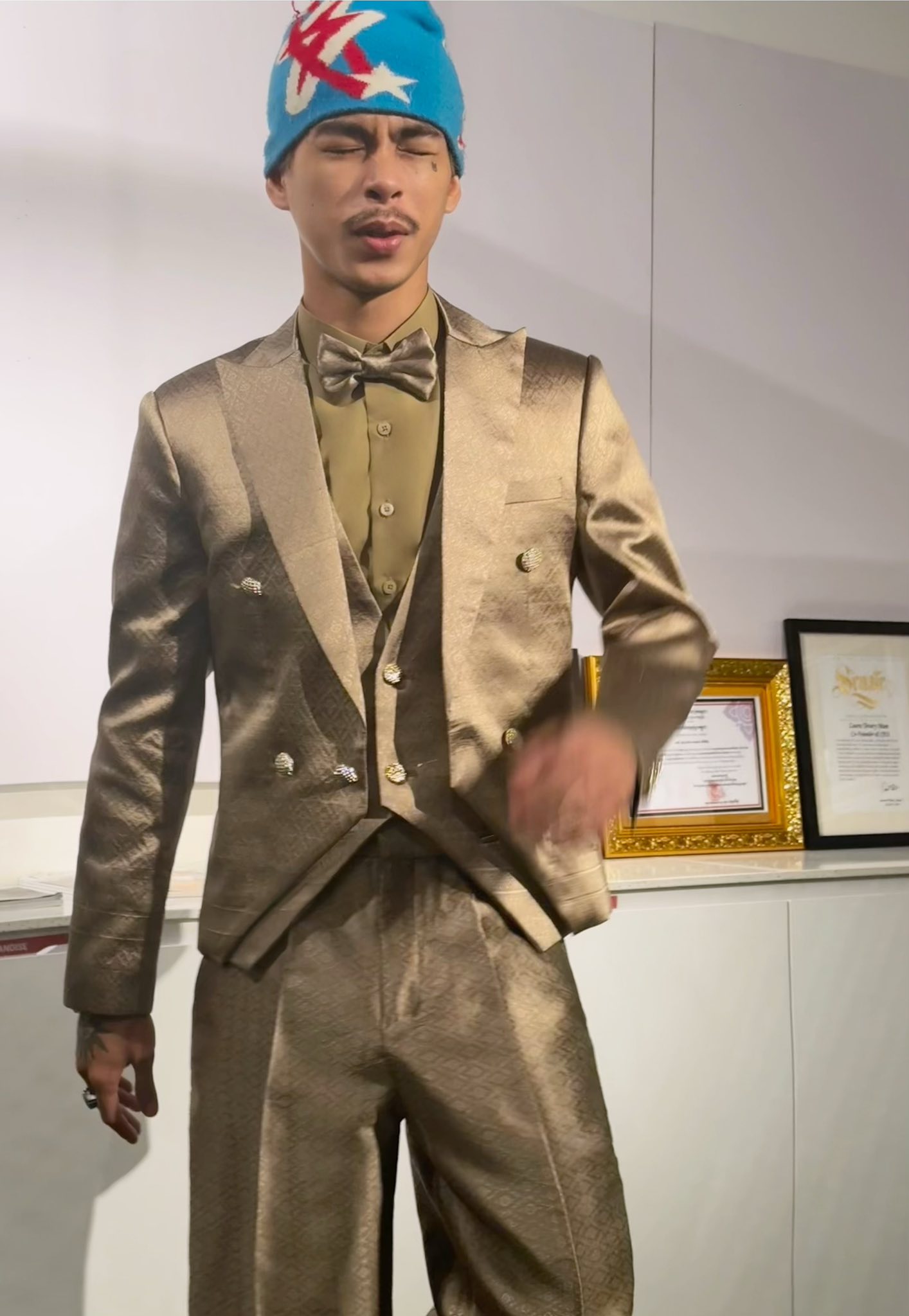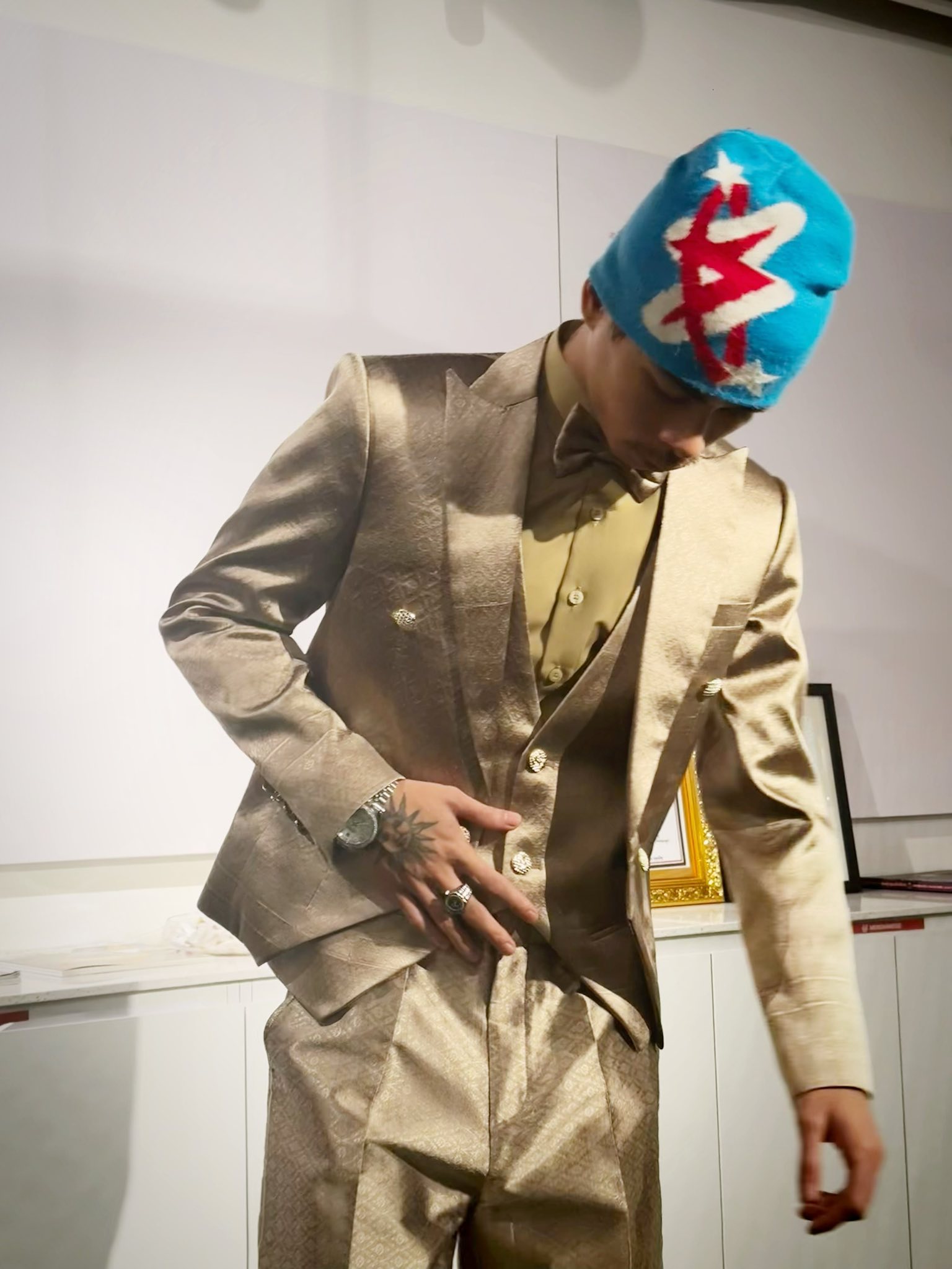 ម្ចាស់សម្អាងការ ណុប ដាណេ បានបង្ហាញពីរូបភាពឈុតពណ៌មាសច្នៃពីហូលខ្មែរ ដែលកំពូលតារារ៉េប វណ្ណដា គ្រងពេលប្រគំតន្ត្រីនៅបារាំង យប់មិញនេះ ពិតជាអស្ចារ្យ ដោយអ្នកច្នៃម៉ូដរូបនោះបញ្ជាក់យ៉ាងច្បាស់ថា ជាការលាយបញ្ចូលគ្នារវាងស្ទីល៍ខ្មែរ និងបារាំង។