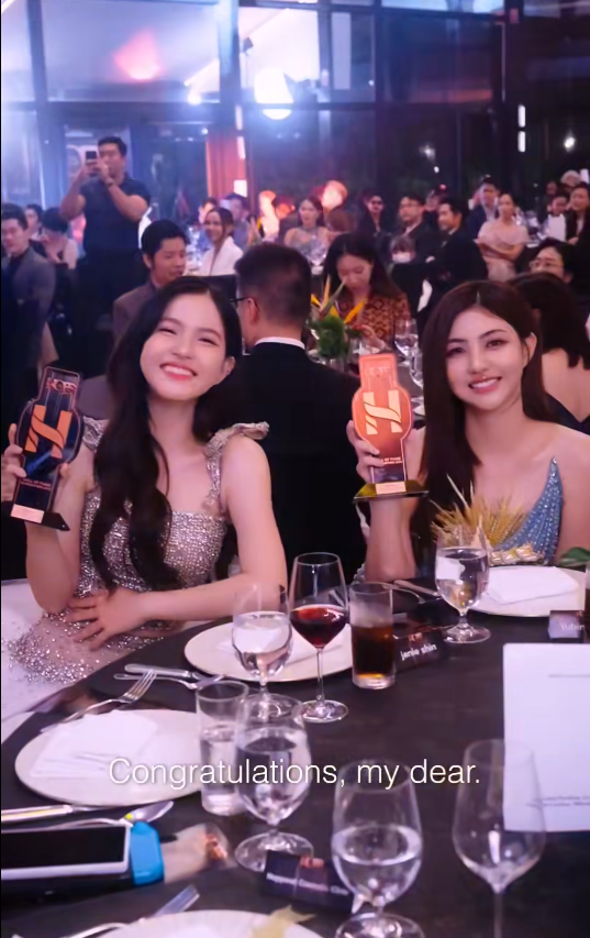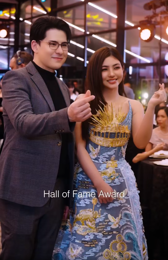 បន្ថែមពីរូបតំណាងខេត្ត/រាជធានីទាំង ២៥ នៅចុងរ៉ូប យូប៊ីន បានដឹកឃើញគំនិតច្នៃប្រតិដ្ឋ ដោយឌិនអង្កាំតូចៗពណ៌ស តំណាងឲ្យឆ្នេរខ្សាច់សក្បុសនៃសមុទ្រខ្មែរ។ ស៊ីន យូប៊ីន និង ស៊ីន ជេននី ក៏បានជួបសិល្បករខ្មែរមួយរូបទៀត គឺព្រះនាង នរោត្តម ជេនណា ក៏មានវត្តមានឡើងទទួលពានរង្វាន់ពីកម្មវិធី HOFS ដែរ ហើយនាងក៏បានថតរូបជាមួយសិល្បករមកពីប្រទេសផ្សេងៗជាច្រើនរូបទៀត។
