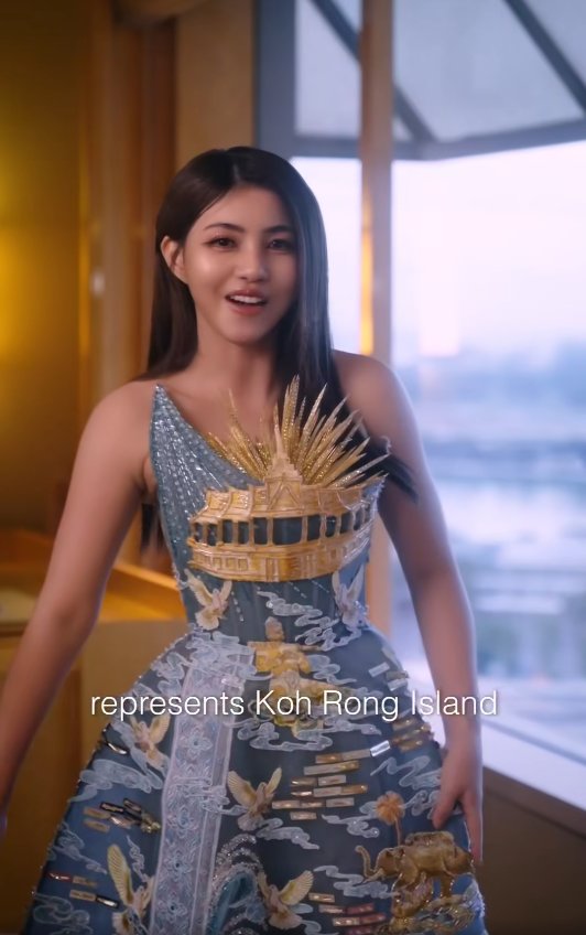 បរិយាយពីរ៉ូបដែលគ្រងលើខ្លួនសង្សារ ខាត់ វ៉ៃហាំង ពិតជាស្រស់ស្អាត និងបង្កប់អត្ថន័យជ្រាលជ្រៅ។ យូប៊ីន បានឲ្យដឹងថា រ៉ូបនោះ គឺនាង និង Designer ខ្មែររួមគ្នាបង្កើតចេញជាឈុតនោះមក។ នៅចំពីមុខនៃឈុតយើងអាចឃើញរូបព្រះបរមរាជវាំង តំណាងរាជធានីភ្នំពេញ, រូបលោកតាដំបងក្រញូវ ខេត្តបាត់ដំបង, រូបសំណាក់ឆ្នាំង របស់ខេត្តកំពង់ឆ្នាំង, រូបសំណាក់ដំរីជាន់ខ្លា នៃខេត្តកំពង់ធំ…។
