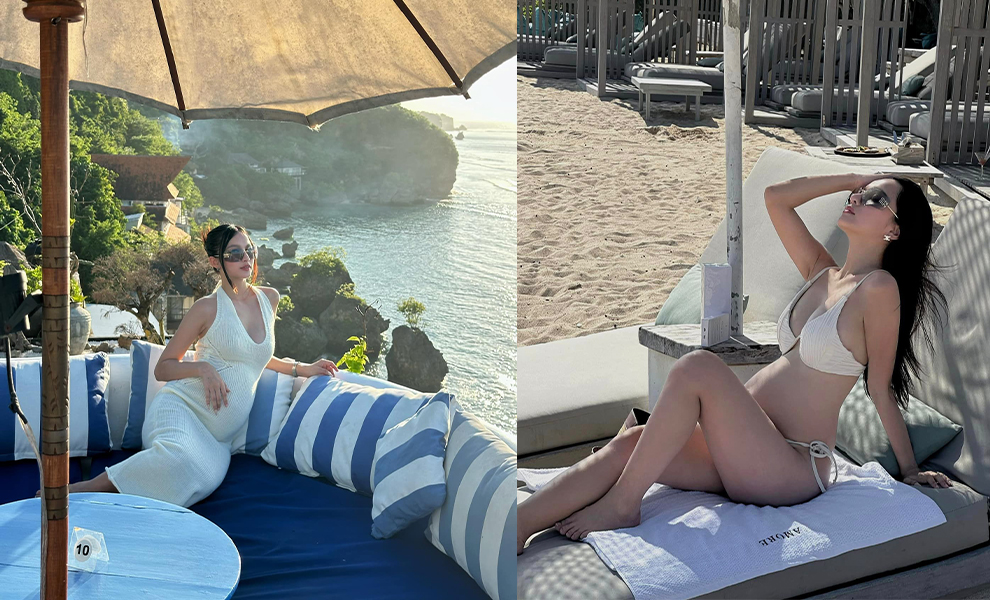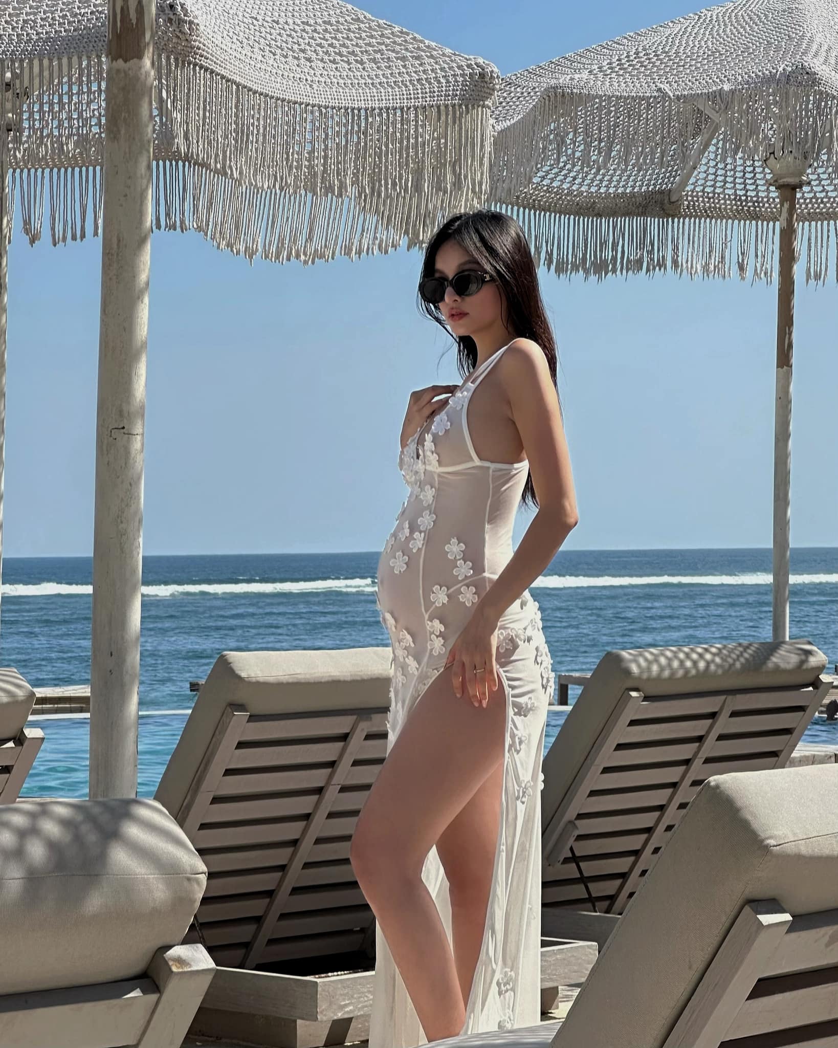 ស្រីស្អាត ដាដាវ នៅតែខ្ញង់ជាមួយការតុបតែងខ្លួន និងការលេងម៉ូដសម្លៀកបំពាក់សិចស៊ីនៅលើខ្សាច់សក្បុស នៃប្រទេសឥណ្ឌូណេស៊ី បើទោះបីជាអ្នកនាងពពោះទារកជាង ៤ ខែក៏ដោយ។