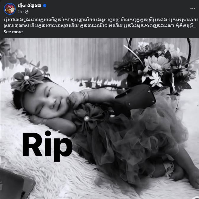 មុននេះបន្តិច អ្នកនាង ញឹម ច័ន្ទថន បានបង្ហោះលើផេកផ្លូវការចូលរួមរំលែកទុក្ខតារាចម្រៀង កែវ សុបញ្ញា ខណៈកូនស្រីបណ្ដូលចិត្តដែលទើបតែកើតបាន ៥ ខែ បានទទួលមរណភាពដោយរោគាពាធ។