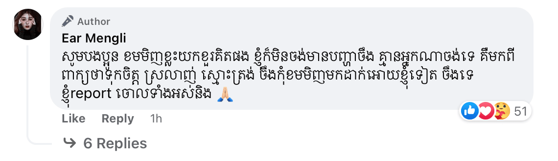 អៀ ម៉េងលិ ប្រកាសឱ្យបុរសជាអតីតគូស្នេហ៍ចូលខ្លួនដោះស្រាយលុយបំណុលជាង៨ម៉ឺនដុល្លារ