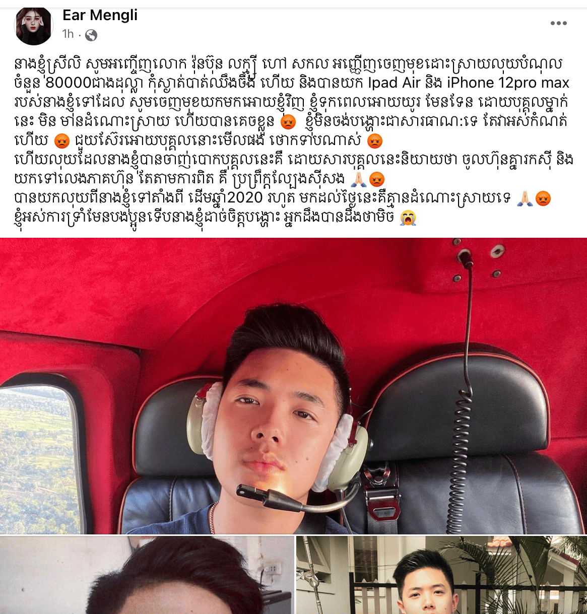 យោងតាមការប្រកាសរបស់ស្រីស្អាត អៀ ម៉េងលិ បុរសម្នាក់ដែលនាងប្រកាសឱ្យចូលខ្លួនមកដោះស្រាយលុយបំណុលនោះមានឈ្មោះថា លោក វ៉ុនប៊ុន លក្ម្សី ហៅ សកល បានជាប់បំណុលលុយជាង ៨ម៉ឺនដុល្លារជាមួយនាង ថែមទាំងបានយក Ipad Air និង iPhone 12pro max របស់នាងទៅជាមួយដែរ។ តារាស្រីកំពុងឡើងតម្លៃខ្លួន១ទ្វេជា២រូបនេះ បញ្ជាក់ថា នាងបានចាញ់បោកបុគ្គល ឈ្មោះ សកល ដោយសារបុគ្គលម្នាក់នេះនិយាយថា ចូលហ៊ុនគ្នារកស៊ី និងយកទៅលេងភាគហ៊ុន តែតាមការពិត គឺប្រព្រឹក្តល្បែងស៊ីសង។ ហើយ បុគ្គលឈ្មោះ សកល បានយកលុយពីនាងទៅតាំងពី ដើមឆ្នាំ2020 រហូតមកដល់ថ្ងៃនេះ។