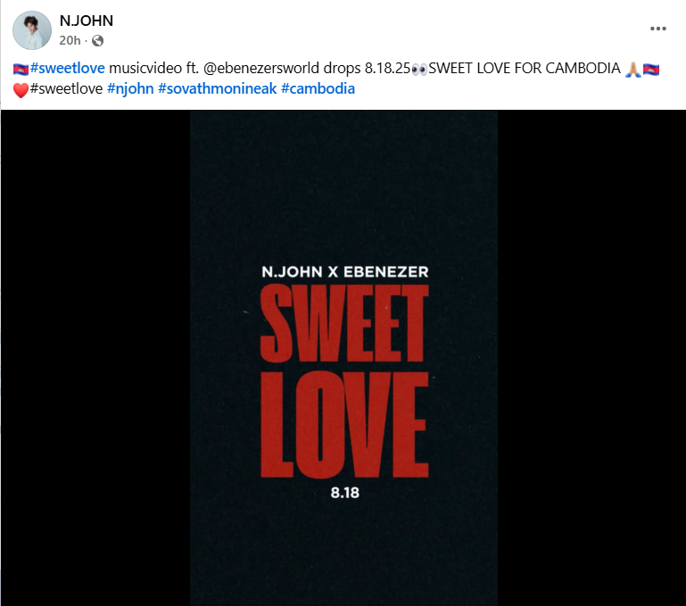 ថ្មីៗនេះ N.John បានប្រកាសឲ្យដឹងថាបទ «Sweet Love» Music វីដេអូ ដែល ft Ebenezers World នឹងបង្ហាញនៅថ្ងៃ ១៨ ខែសីហា ឆ្នាំ ២០២៥។ អ្វីគួរឲ្យចាប់អារម្មណ៍គឺ Ebenezers World ជាបុគ្គលល្បីល្បាញក្នុងវិស័យចម្រៀង R&B នៅអាមេរិក។ Ebenezer គឺជាអ្នកផលិត Rapper , អ្នកបច្ចេកទេសនិងអ្នកនិពន្ធ។