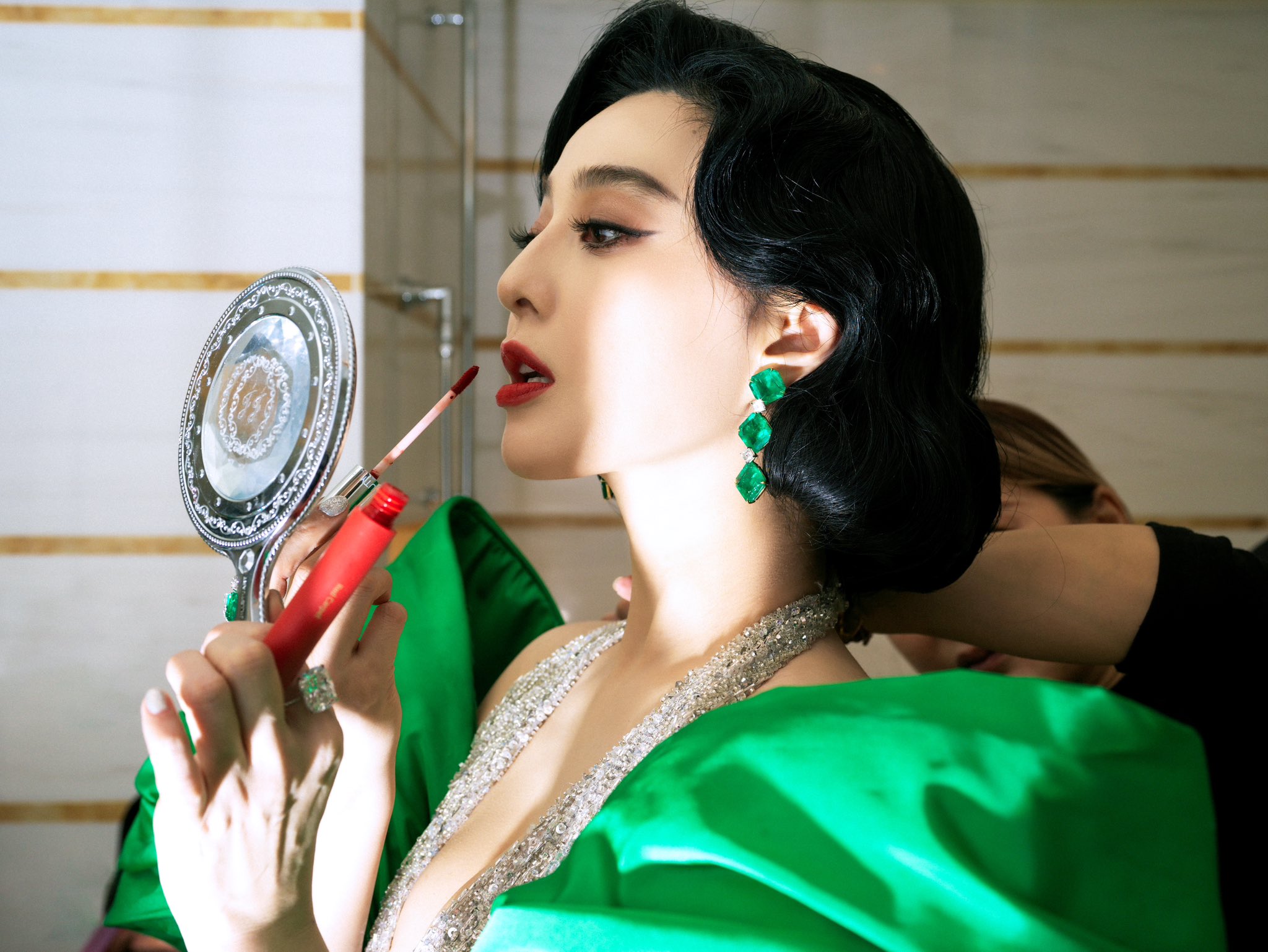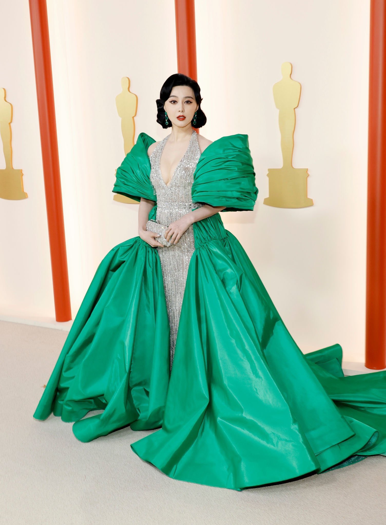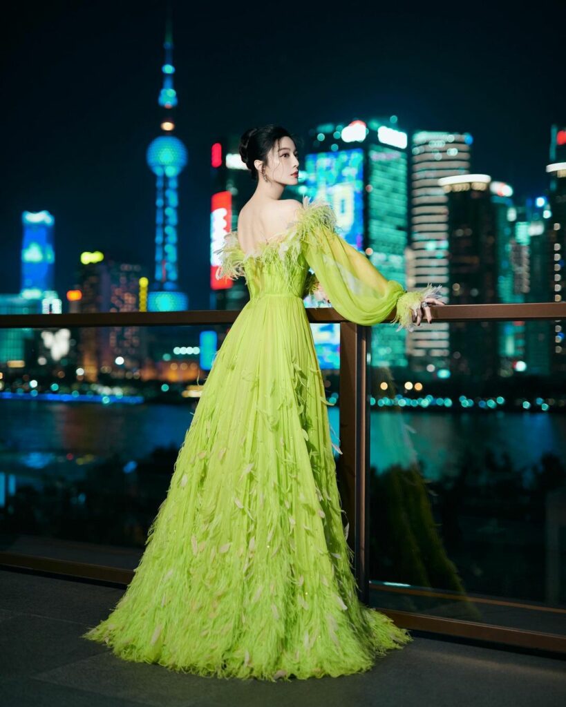 តារាស្រីវ័យ ៤១ ឆ្នាំរូបនេះបានបង្ហាញខ្លួនលើកម្រាលព្រំពណ៌ក្រហមជាមួយរ៉ូបពណ៌បៃតងលាយទឹកប្រាក់យ៉ាងស្រស់ស្អាត និងមើលទៅលេចធ្លោខ្លាំង។ រ៉ូបដែលតារាស្រី Fan BingBing ស្លៀកគឺច្នៃដោយអ្នកច្នៃម៉ូតល្បីលោក Tony Ward និងជាម៉ូតចេញថ្មីក្ដៅៗ សម្រាប់ឆ្នាំ ២០២៣។