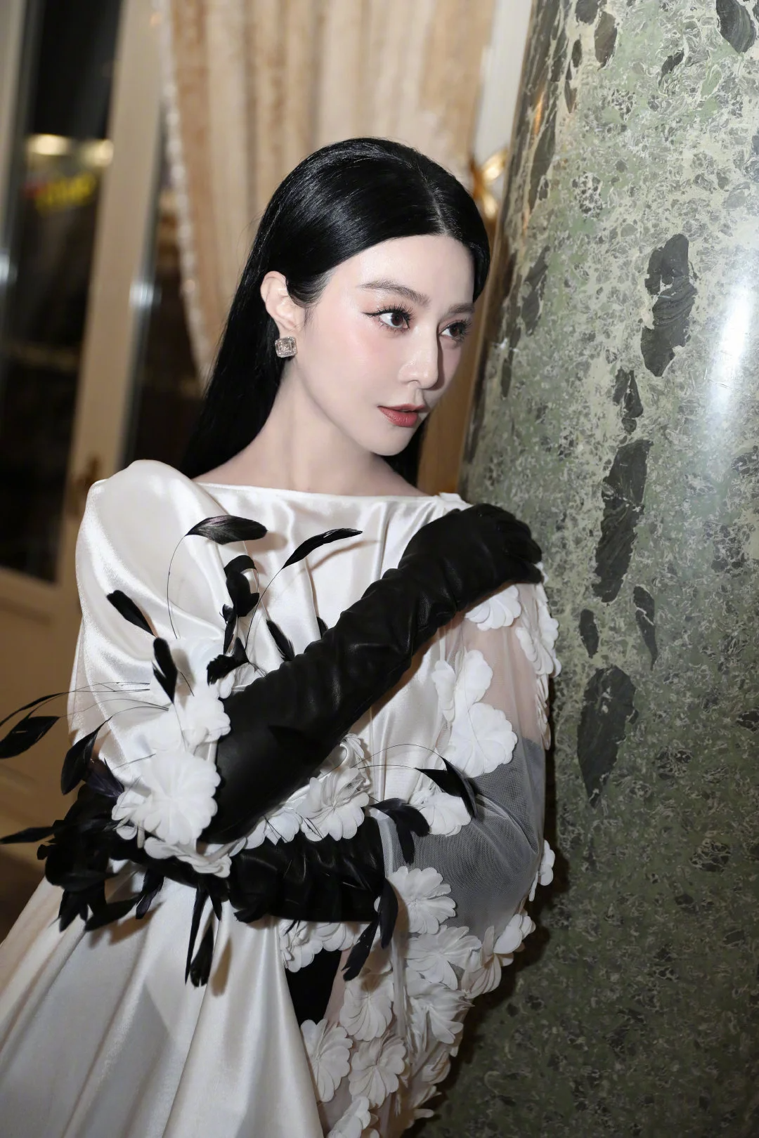 ក្នុងវ័យ ៤២ឆ្នាំ Fan Bingbing បានធ្វើឱ្យមហាជននិងប្រព័ន្ធផ្សព្វផ្សាយក្នុងស្រុកចាប់អារម្មណ៍ ពេលស្លៀករ៉ូបប្រេន Georges Chakra Fall 2023 Couture ដែលទោះបីជាមានវ័យច្រើនយ៉ាងណា ក៏នៅតែមានភាពស៊ិចស៊ី និងទាក់ទាញ។ ជាពិសេស បើទោះជាថតជាមួយកាម៉េរាធម្មតា ឬតាមកាមេរ៉ាធំៗ ក៏សម្រស់របស់នាងជះចេញមកយ៉ាងស្រស់ស្អាតគ្រប់សន្លឹក។ នៅពេលដែលឈរថតជាមួយភ្ញៀវកិត្តិយសផ្សេងៗ ក៏សម្រស់នាងនៅតែលេចធ្លោជាងគេដែរ។