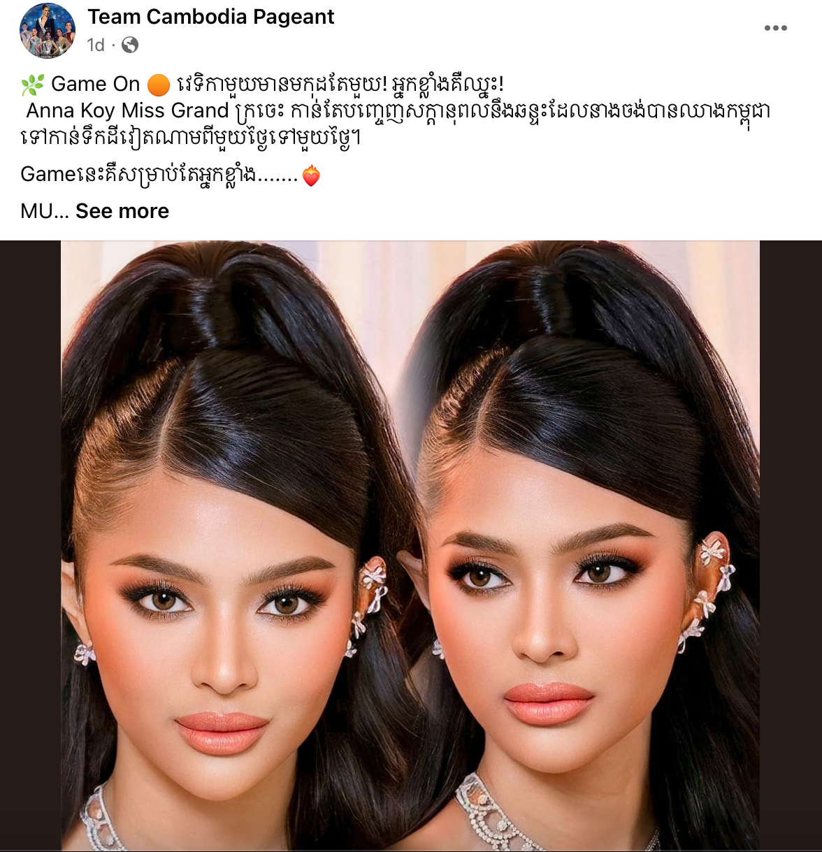 ទំព័រហ្វេសប៊ុកផ្លូវការ Team Cambodia Pageant បានបង្ហោះឡើងថា «Anna Koy Miss Grand ក្រចេះ កាន់តែបញ្ចេញសក្តានុពល និងឆន្ទះដែលនាងចង់បានឈាងកម្ពុជាទៅកាន់ទឹកដីវៀតណាមពីមួយថ្ងៃទៅមួយថ្ងៃ»។ ខណៈ ស្រីនោ វិញត្រូវហ្វេនផេកនេះនិយាយថា «ដូចនិយាយចឹងមកុដមានតែមួយទេ Nanoមកលើកទី៣គឺមិនមែនមកលេងៗទេ Nanoតាមទាន់គ្រប់ Trend Nanoមកជាមួយនឹង Energy មាន fanច្រើន មាន 3B នៅខ្វះអីទៀត….. Nano Miss Grand ភ្នំពេញ និយាយក្នុងថ្ងៃ Press Conference ថាសុំធ្វើកូនស្រី Boss Nawatម្នាក់ផងបានទេBoss… សំបុត្រទៅវៀតណាមមានតាមួយទេ នរណាជាម្ចាស់ នរណាជាម្ចាស់»។