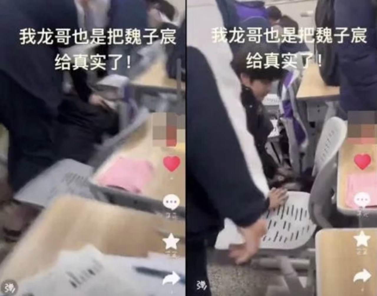 នៅក្នុងឃ្លីបវីដេអូមួយមានសរសេរចំណងជើងដោយប្រែជាភាសាអង់គ្លេស “My Brother Long crushes Wei Zichen!” ខណៈគេសង្កេតឃើញថា Trainee វ័យ ១៣ ឆ្នាំរូបនេះត្រូវបានគេយកកៅអីសង្កត់ពីលើដៃតែម្ដង។ អ្នកលេងអ៊ីនធឺណេតជាច្រើនមានការរន្ធត់ចិត្តយ៉ាងខ្លាំងបន្ទាប់ពីឃើញទង្វើព្រៃផ្សែទាំងនេះ ដោយមានអ្នកលើកឡើងថាក្មេងៗច្រណែននឹងភាពល្បីល្បាញរបស់ Wei Zichen ផងដែរ។