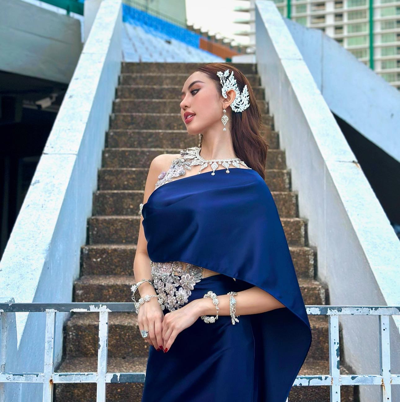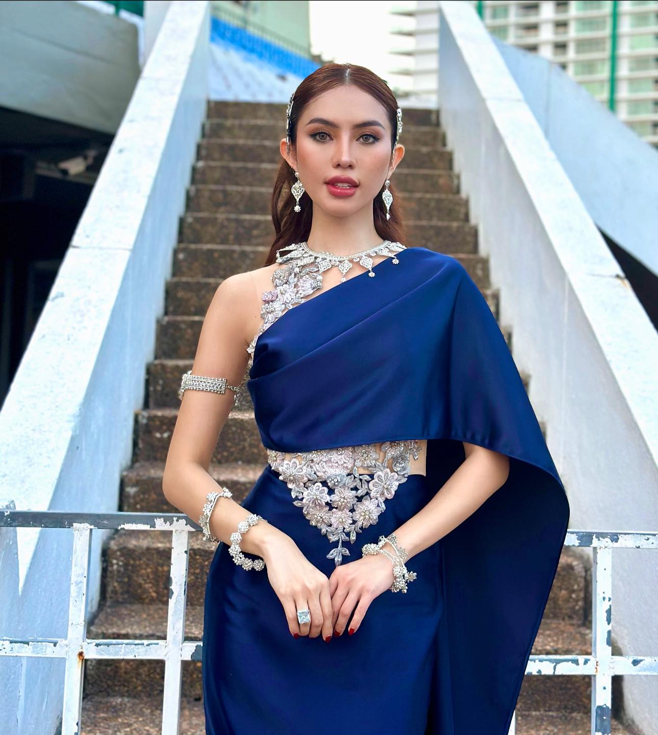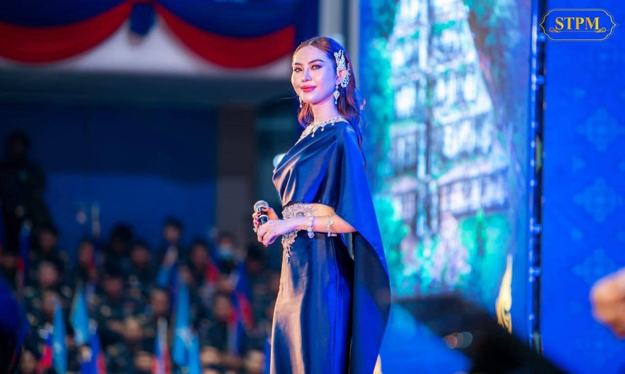 ក្នុងឈុតពណ៌ទឹកប៊ិក និងមានស្បៃពាក់ឆៀង ព្រមទាំងគ្រឿងអលង្ការពណ៌ទឹកប្រាក់ បង្កើនសម្រស់តារាស្រីរូបនេះមួយកម្រិតទៀត។ បើទោះជារាល់ដងកូនស្រីតែមួយរបស់កវីនិពន្ធ ងិន ម៉ានីយ៉ា ជាមនុស្សស្រីស៊ីវិល័យតែងខ្លួនបែបសិចស៊ី តែកាលៈទេសៈដែលកម្មវិធីលំដាប់ថ្នាក់ជាតិបែបនេះ នាងតែងជ្រើសឈុតខ្មែរជានិច្ច។ មួយវិញទៀតនាងជាតារាស្រីដែលពូកែលេងម៉ូដសម្លៀកបំពាក់ខ្លាំង តម្រូវគ្រប់កម្មវិធី។