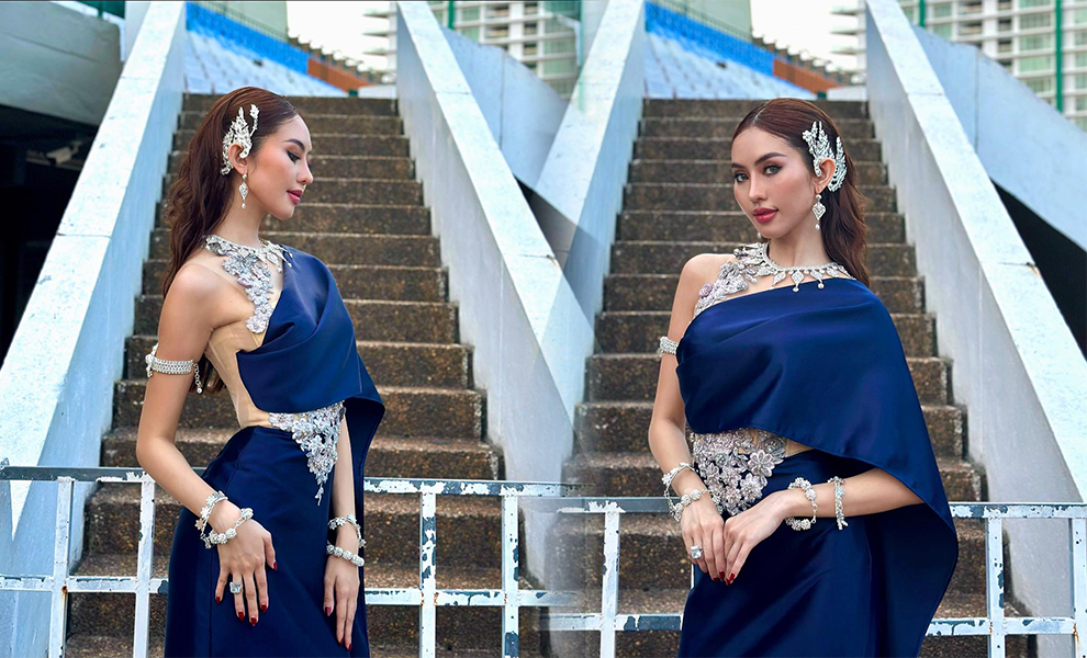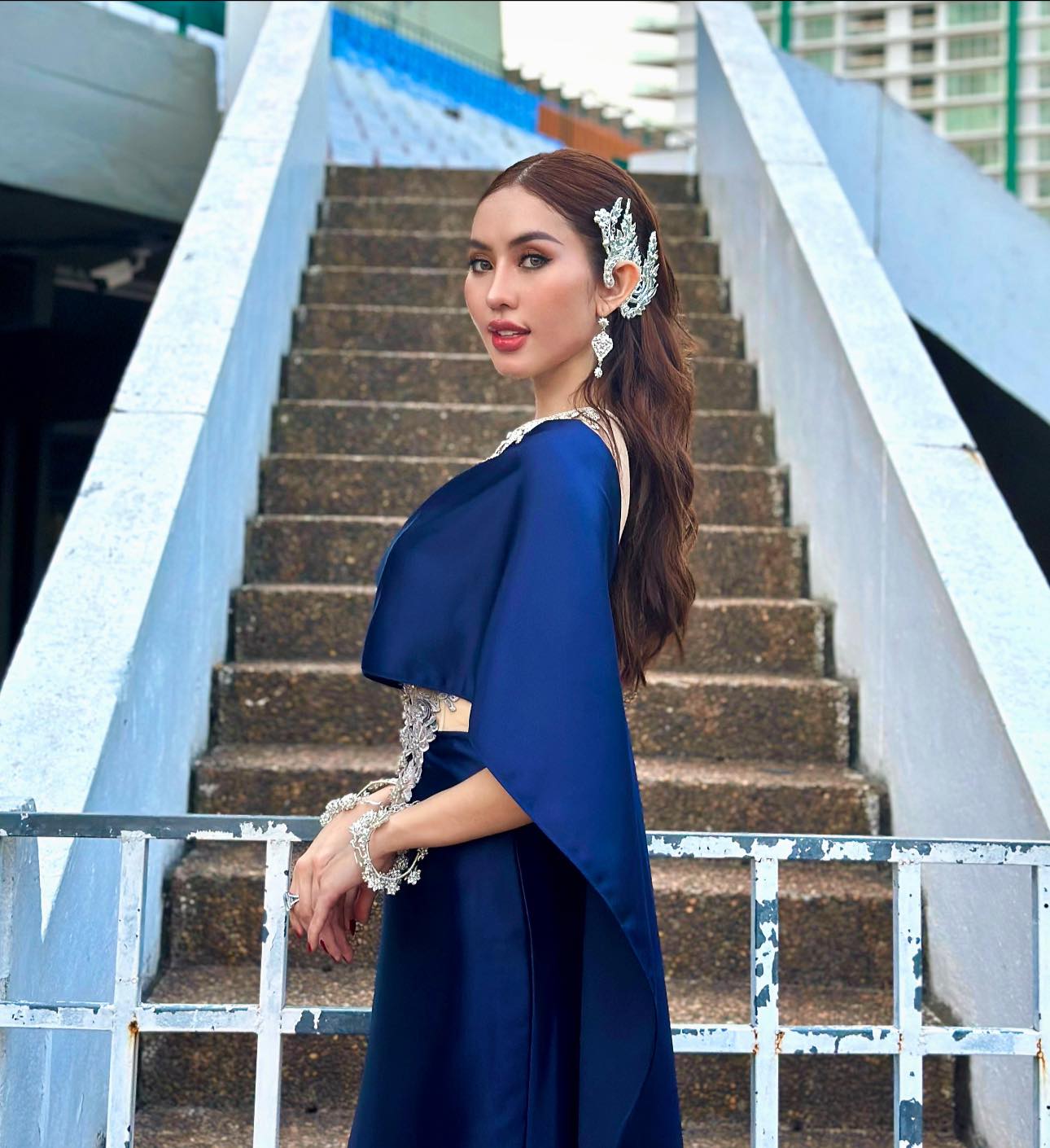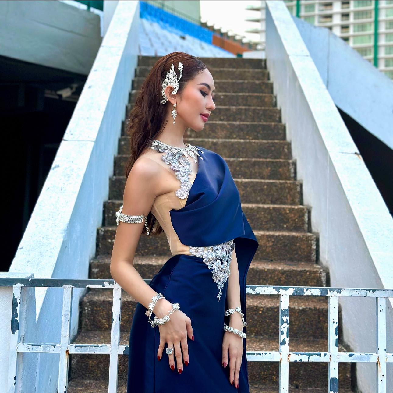ក្នុងឈុតពណ៌ទឹកប៊ិក និងមានស្បៃពាក់ឆៀង ព្រមទាំងគ្រឿងអលង្ការពណ៌ទឹកប្រាក់ បង្កើនសម្រស់តារាស្រីរូបនេះមួយកម្រិតទៀត។ បើទោះជារាល់ដងកូនស្រីតែមួយរបស់កវីនិពន្ធ ងិន ម៉ានីយ៉ា ជាមនុស្សស្រីស៊ីវិល័យតែងខ្លួនបែបសិចស៊ី តែកាលៈទេសៈដែលកម្មវិធីលំដាប់ថ្នាក់ជាតិបែបនេះ នាងតែងជ្រើសឈុតខ្មែរជានិច្ច។ មួយវិញទៀតនាងជាតារាស្រីដែលពូកែលេងម៉ូដសម្លៀកបំពាក់ខ្លាំង តម្រូវគ្រប់កម្មវិធី។