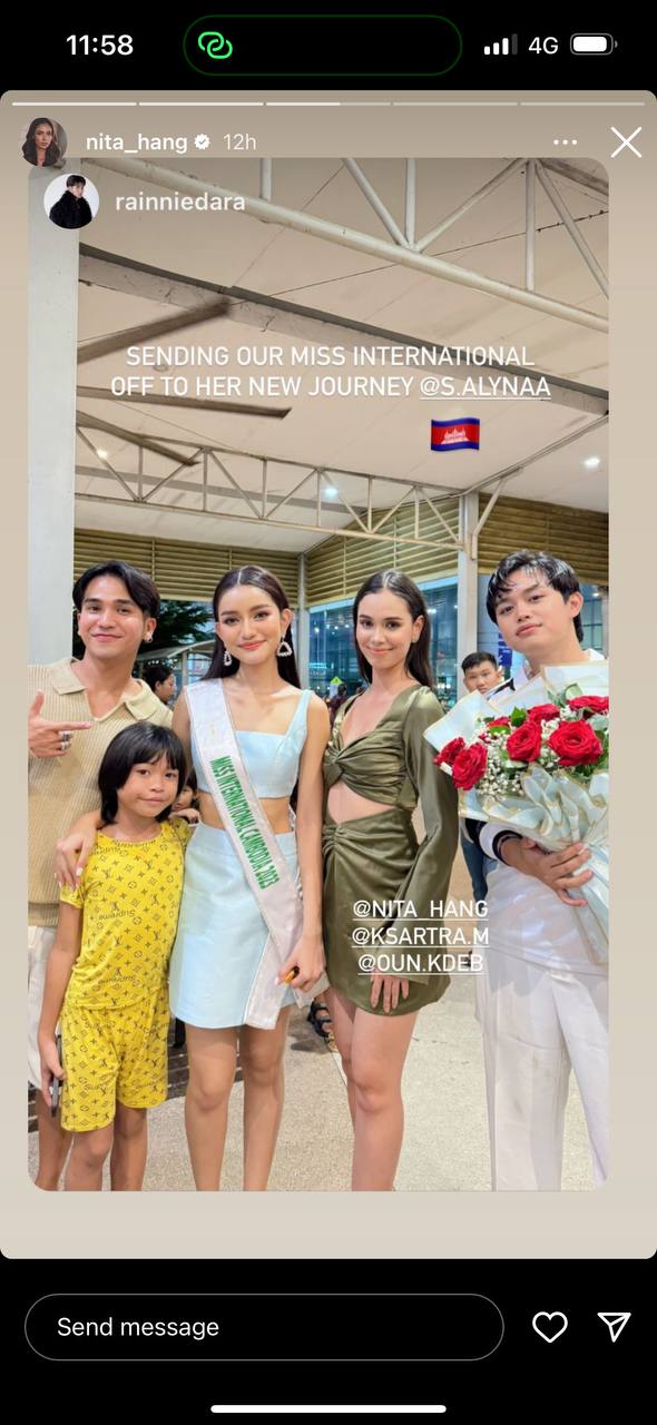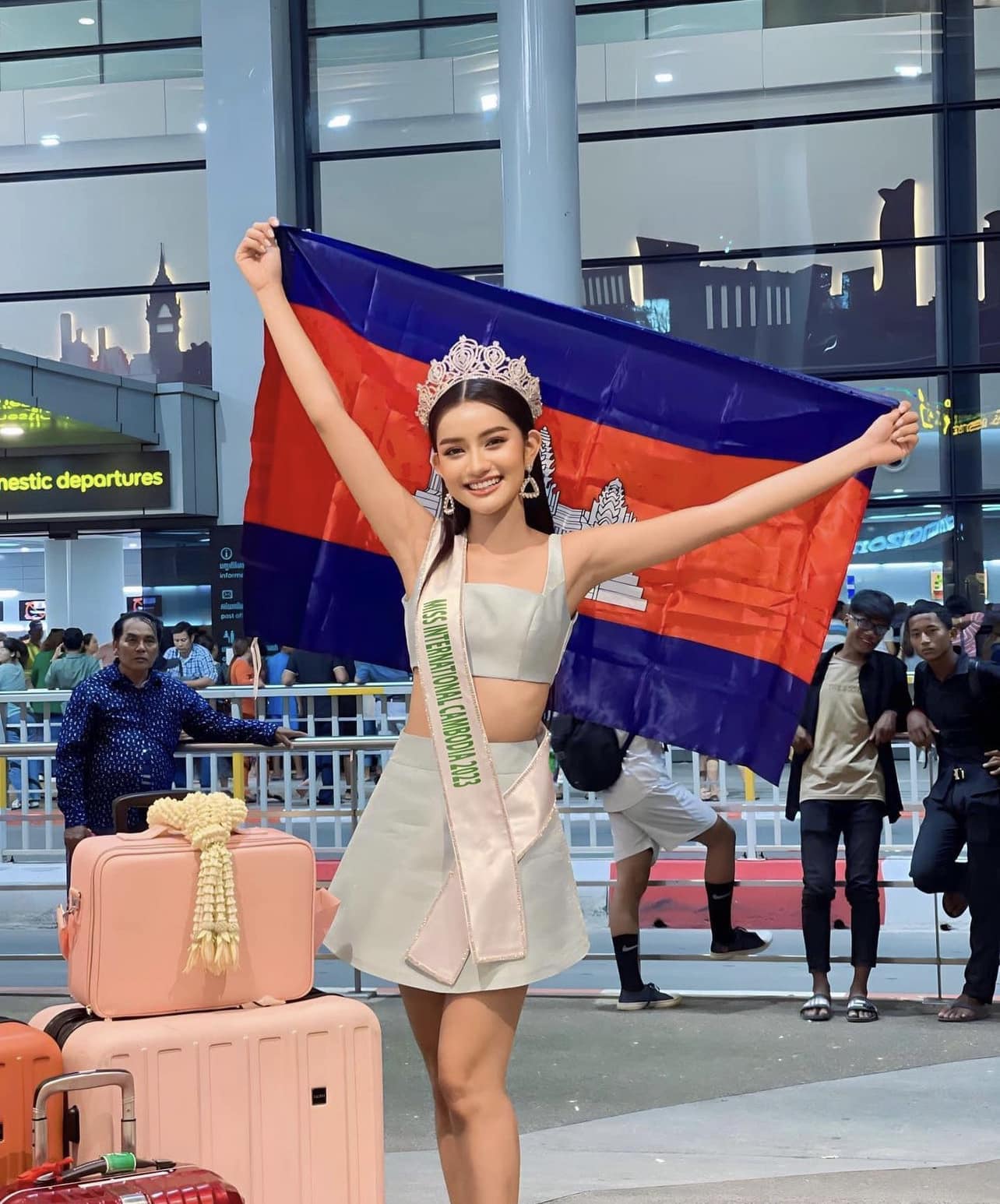 Miss International Cambodia 2023 សំណាង អេលីណា បានចាកចេញពីព្រះរាជាណាចក្រកម្ពុជាឆ្ពោះទៅប្រទេសជប៉ុន ដើម្បីចូលរួមប្រកួតកម្មវិធី Miss International 2023 កាលពីយប់ម្សិលមិញ តាមអាកាសយានដ្ឋានអន្តរជាតិភ្នំពេញ។