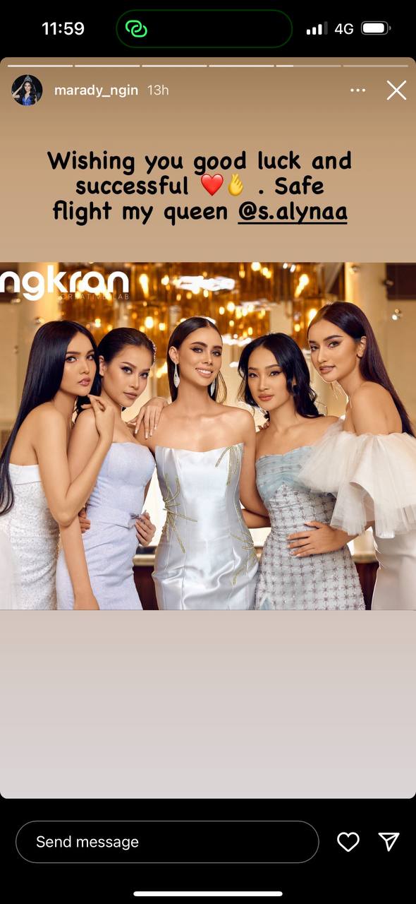 ក្រឡេកទៅមើល បងប្អូនស្រីសែស្រឡាយ Miss Universe Cambodia ឯណោះវិញ ដ្បិតមានតែ ហង្ស ម៉ានីតា ម្នាក់បានមកចូលរួមជូនដំណើរផ្ទាល់ តែបងប្អូនស្រីៗផ្សេងទៀត រួមមាន រឿន ណាត ,រ៉េត សារីតា និង ងិន ម៉ារ៉ាឌី នាំគ្នាបង្ហោះពាក្យជូនពរ និងផ្តល់កម្លាងំចិត្តដល់ សំណាង អេលីណា ព្រោងព្រាតតែម្តង បង្ហាញពីទំហំចិត្ត និងក្តីស្រលាញ់ដែលមានចំពោះគ្នាទៅវិញទៅមក៕
