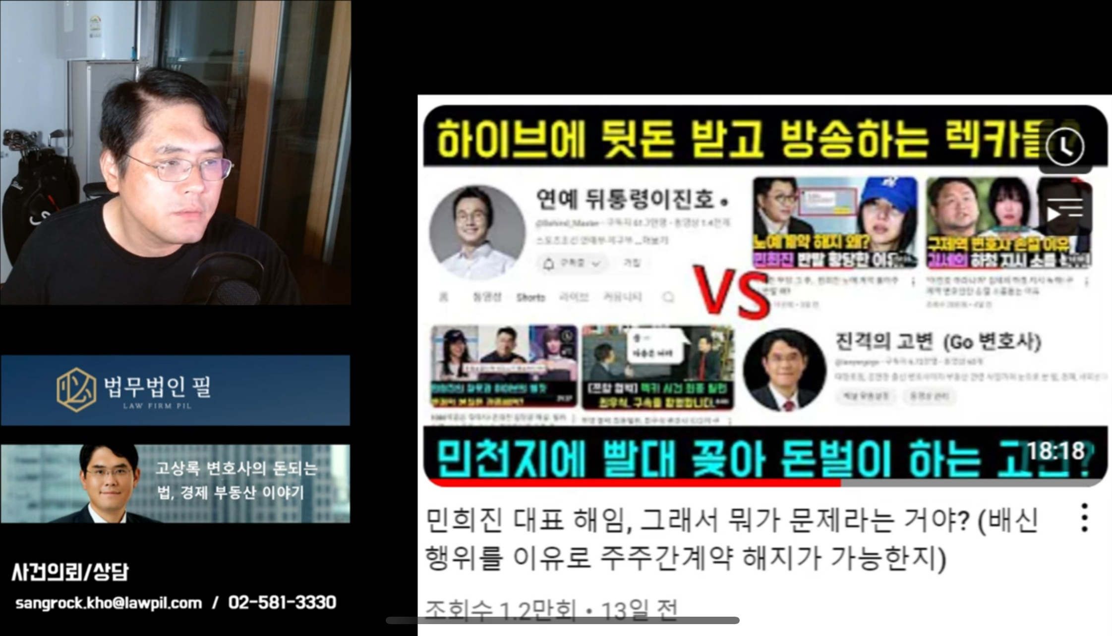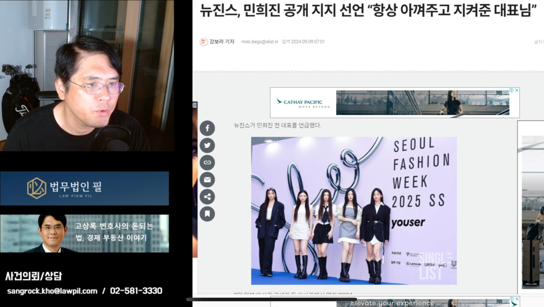 កាលពីថ្ងៃ​ ១៥ ខែកញ្ញា គណនី YouTube “Jingyeokui Lawyer Go” បានបង្ហោះ​វីដេអូមួយដែលលោកបានអធិប្បាយអំពីប្រធានបទក្តៅៗជាច្រើនដែលបានកើតឡើងក្នុងប្រទេសកូរ៉េខាងត្បូង រួមទាំងរឿងរ៉ាវរបស់ NewJeans ផងដែរ។ នៅក្នុងវីដេអូនោះ លោកបានលើកយក comment មួយដែលបានបញ្ចេញមតិនៅលើវីដេអូមុនរបស់លោក មកបកស្រាយជូនទស្សនិកជន។