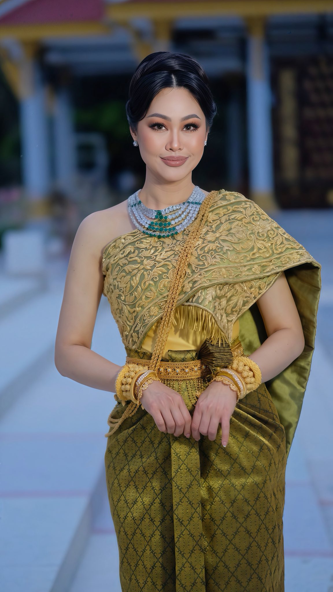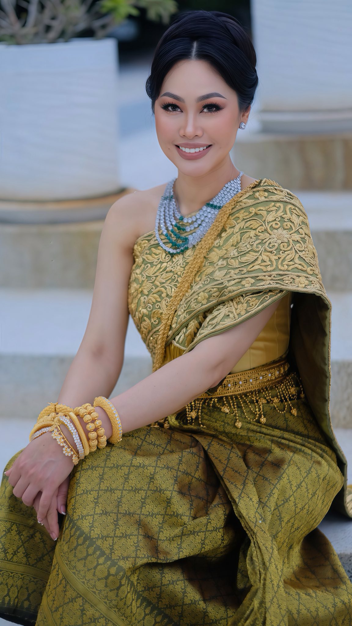 វ័យជ្រេបន្តិចក៏ពិតមែន តែរូបសម្រស់របស់តារាម៉ូដែលរូបនេះ នៅតែស្រស់ស្អាតខ្លាំងពេលគ្រងឈុតសម្លៀកបំពាក់កូនក្រមុំតាមបែបប្រពៃណីខ្មែរខ្មែរ មើលទៅពិតជាល្អល្អះស័ក្ដិសមជាស្ត្រីខ្មែរដែលទន់ភ្លន់តែមិនទន់ជ្រាយ។