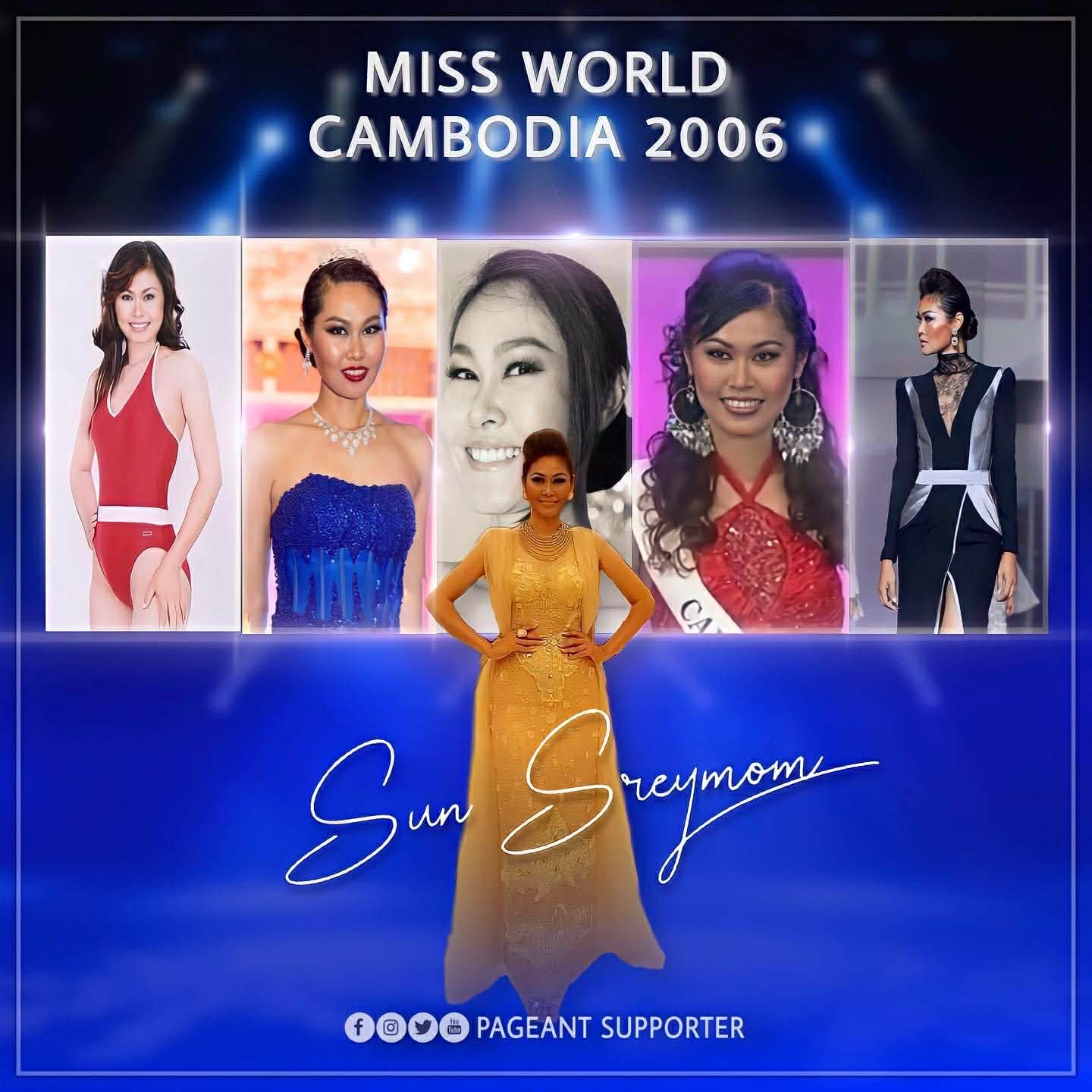 តារាម៉ូដែល ស៊ុន ស្រីមុំ ក៏ធ្លាប់ នាំយកទង់ជាតិខ្មែរទៅត្រដាងលើឆាកអន្តរជាតិដោយមោទនភាពចំនួន ៣ដង រួមមាន៖ ទី១. កម្មវិធី Miss Tourism Queen International 2006 នៅទីក្រុងសៀងហៃ ប្រទេសចិន ក្នុងឆ្នាំ២០០៦, ទី២. កម្មវិធី Miss World 2006 នៅប៉ូឡូញ ក្នុងឆ្នាំ ២០០៦ ដែលកាលនោះមាន ១០៤ ប្រទេសជុំវិញពិភពលោកចូលរួមប្រកួតប្រជែង និងទី៣. កម្មវិធី Miss Tourism International 2006 នៅក័ងចូវ ប្រទេសចិន។