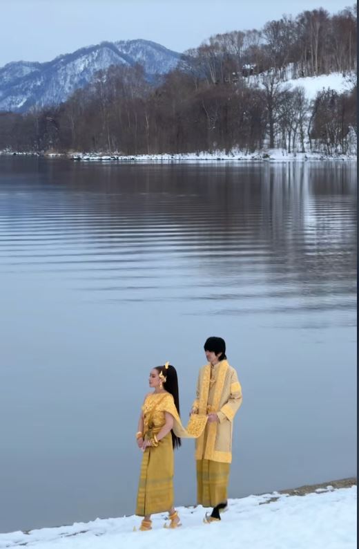 តារាចម្រៀងរ៉េប ជី ដេវីត និងភរិយារូបស្រស់ ទេព បូព្រឹក្ស បានដឹកដៃគ្នាធ្វើដំណើរឆ្លងប្រទេសទៅថតរូប Pre-wedding ដោយបានសម្លៀកបំពាក់បុរាណខ្មែរ ឈុត «ព្រះថោងតោងស្បៃនាងនាគ» ថតបង្ហាញភាពស្រស់ស្អាតលើភ្នំទឹកកកនៅប្រទេសជប៉ុន។