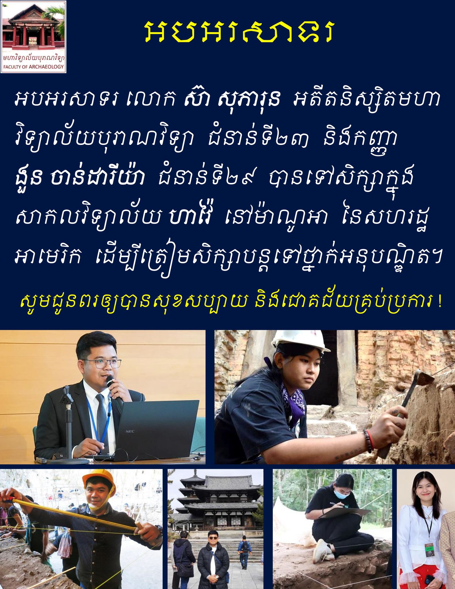 ថ្មីៗនេះមហាវិទ្យាល័យបុរាណវិទ្យាបានប្រកាសដំណឹងរីករាយជូនដល់អតីតនិស្សិតបុរាណវិទ្យា ២ រូបដែលម្នាក់ក្នុងចំណោមនោះ ជាប្អូនស្រីបង្កើត ជី ដេវីត គឺ ងួន ចាន់ដារីយ៉ា បានធ្វើឱ្យបងប្រុសរូបនេះរំភើបចិត្តខ្លាំង ក្រោយប្អូនស្រីទទួលបានអាហារូបករណ៍ថ្នាក់អនុបណ្ឌិតនៅសាកលវិទ្យាល័យហាវ៉ៃនៅម៉ាណូអា សហរដ្ឋអាមេរិក។ តារារ៉េបប្រុសល្បីឈ្មោះរូបនេះបានបង្ហាញក្ដីរំភើបចំពោះប្អូនស្រី ព្រោះនាងបានធ្វើឱ្យការសម្រេចចិត្តកាលពី១៣ឆ្នាំរបស់លោកក្លាយជាការសម្រេចចិត្តដ៏អស្ចារ្យបំផុតក្នុងជីវិត។ ជី ដេវីត មានមោទនភាពបំផុតលើប្អូនស្រីម្នាក់នេះហើយក៏បានអរគុណនាងគោរពពាក្យសន្យាដោយឆន្ទៈ។