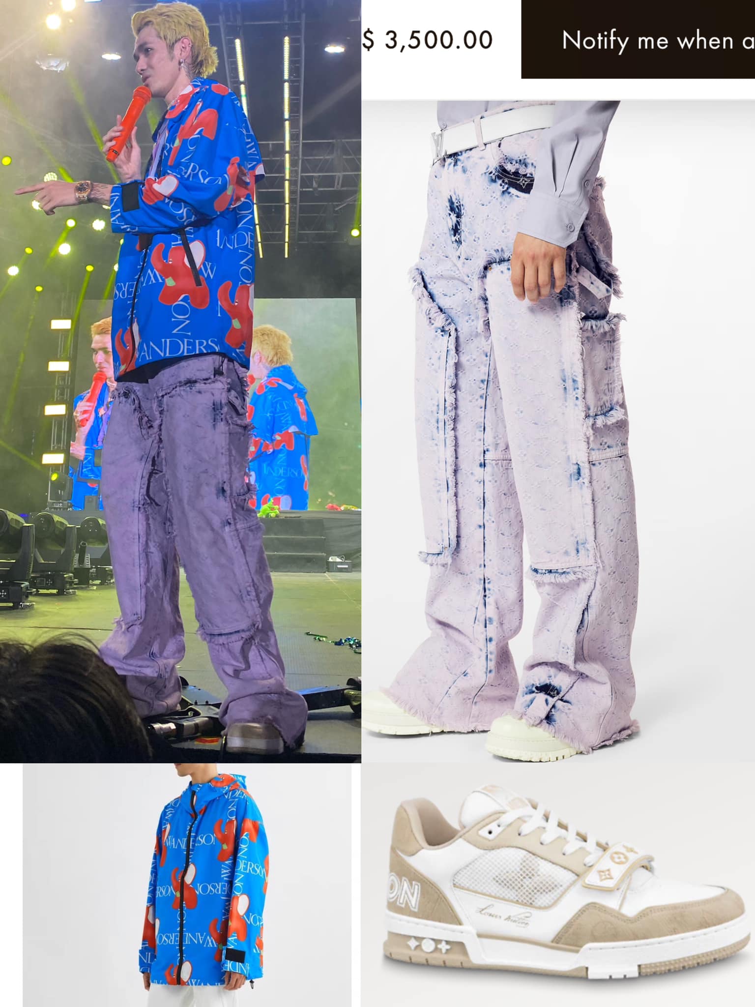 - សម្លៀកបំពាក់ប្រេន Louis Vuttion ពេញមួយតួខ្លួន (ខោ អាវ មួក ស្បែកជើង) តម្លៃសរុបជាង ៩ ពាន់ដុល្លារ។