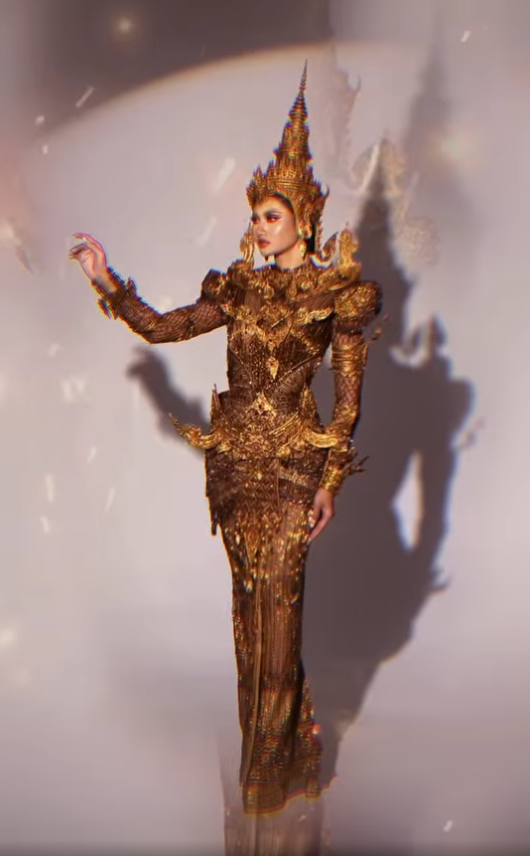 ឈុត «អាទិទេពនៃសម័យកណ្ដាល» ពិតជាសមនឹងរូបរាងខ្ពស់ស្រឡះរបស់ ប្រាសាទ ដាវីន Miss Universe Cambodia 2024។ ឈុតនេះដែរ ត្រូវបានប៉ាក់ឌិនគ្មានចន្លោះឡើយ ហើយទឹកមុខរបស់ ដាវីន ដែលម៉ឺងម៉ាត់ ពិតជាសមឥតខ្ចោះទាំងព្រម ហើយពណ៌ឈុតគឺជាពណ៌មាស សមនឹងស្បែកសម្បុរស្រអែមស្រស់នៃម្ចាស់មកុដ Miss Universe Cambodia 2024។