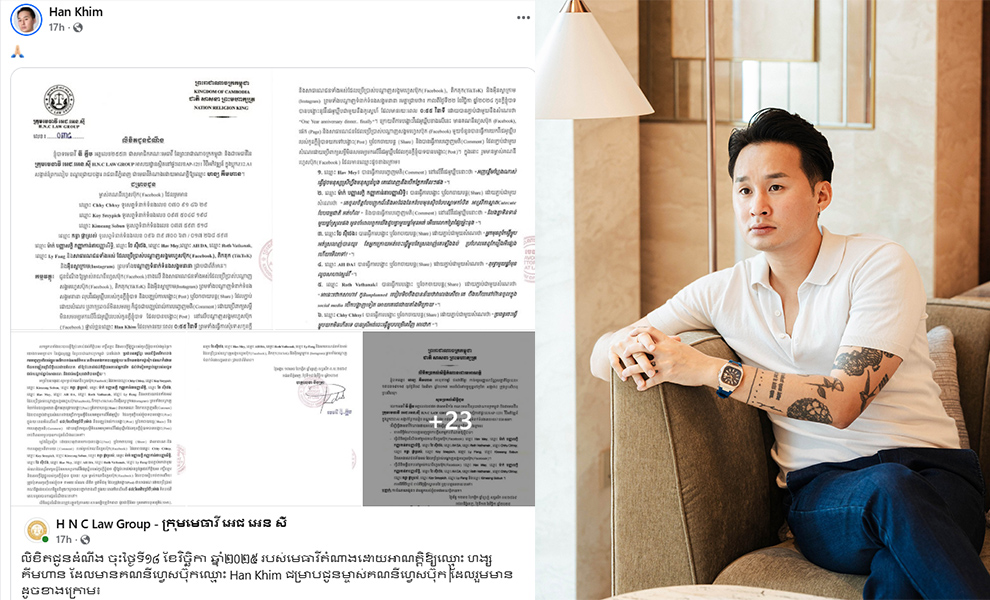 លោក គឹម ហាន ក៏បានចែករំលែកពីការបង្ហោះរបស់ក្រុមហ៊ុនមេធាវី ដោយមានការជូនដំណឹងទៅម្ចាស់គណនី FB ប្រមាណ ២០ រូបដែលធ្លាប់បញ្ចេញមតិ, ចែករំលែក ដោយពាក្យប្រមាថកាតទានផ្សេងៗមកលើរូបលោក និងគូស្នេហ៍ពេលបច្ចុប្បន្ន៕