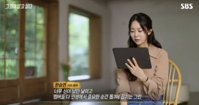 តារាស្រី Han SeungYeon បានបង្ហាញខ្លួនក្នុងកម្មវីធី “Unanswered Question” និងបាននិយាយពីដំណើរជីវិតរបស់នាងជាមួយសមាជិកក្រុម Kara។ នាងមិនភ្លេចរំឭកដល់មិត្ដសម្លាញ់រួមក្រុមគឺ Haraដែលបានចាកចេញទៅបាត់ហើយនោះទេ។ កាលពីមុន នាងចូលចិត្ដហៅ Hara ថា Ppaeppong ដោយសារតែនាងមានរូបរាងស្គមតូចច្រឡឹង ឯ Hara តែងហៅនាងថា Jjoppong ដោយសារនាងមានកម្ពស់ទាប។