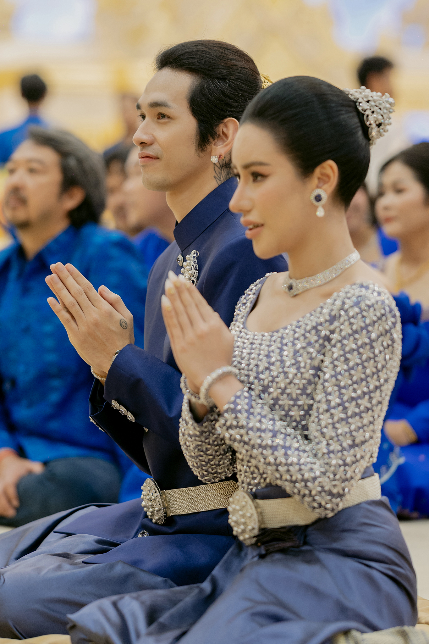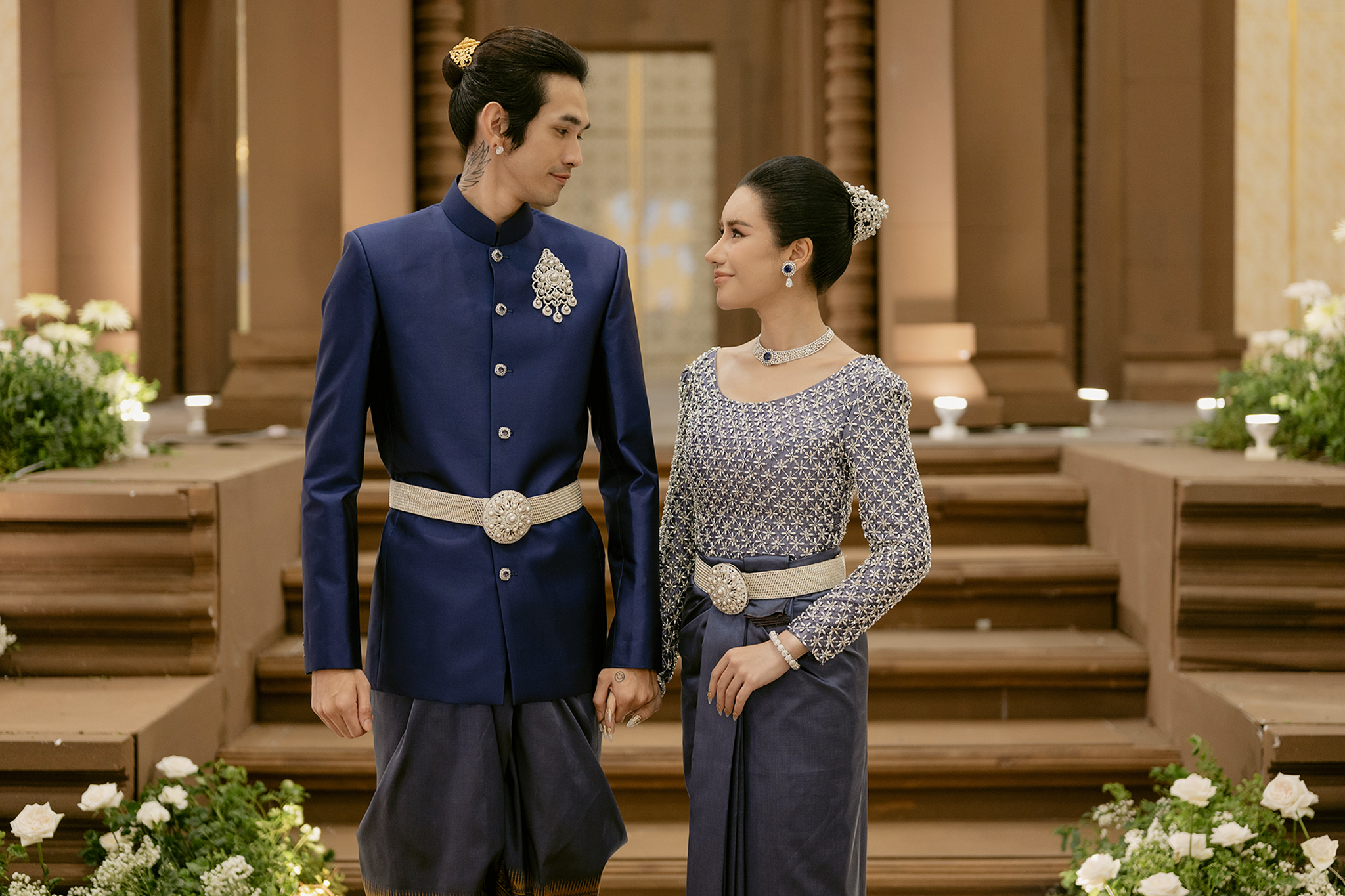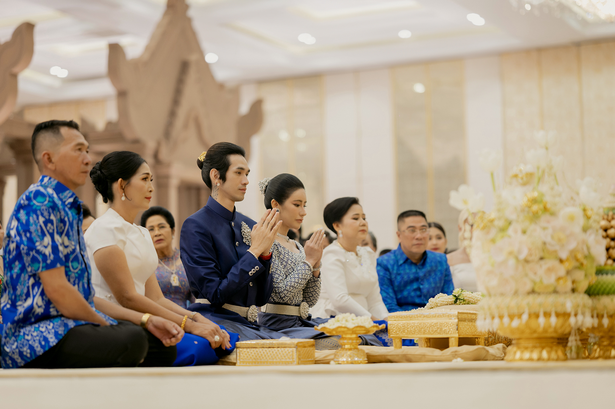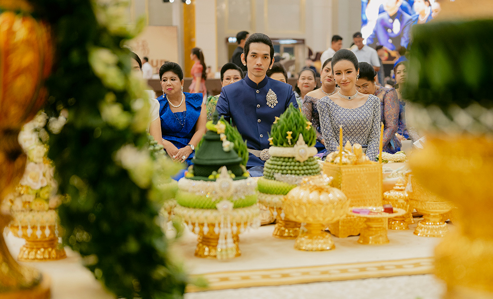 ជាទំនៀមទម្លាប់តាំងពីបុរាណកាលមកម្លេះដែលកូនកំលោះក្រមុំដាច់ខាតត្រូវមានចាស់ទុំសងខាងជាស្ត្រីដឹកដៃក្នុងថ្ងៃមង្គលការ។ ក្នុងថ្ងៃមង្គលការតារាចម្រៀងរ៉េប ជី ដេវីត និង ទេព បូព្រឹក្ស ត្រូវបានផ្ដល់កិត្តិយសពីសំណាក់លោកជំទាវ ហ៊ុន ស៊ីណាត ប្អូនស្រីបង្កើតសម្ដេចតេជោ ហ៊ុន សែន ជាអ្នកដឹកដៃដោយផ្ទាល់ ហើយកូនកំលោះកូនក្រមុំដែលជាតារាល្បីទាំងគូ ពិតជាស្អាតខ្លាំង នាថ្ងៃចូលរោងជ័យ ដោយឈុតដំបូងពណ៌ខៀវត្រូវតាមក្បួនតម្រាខ្មែរ។