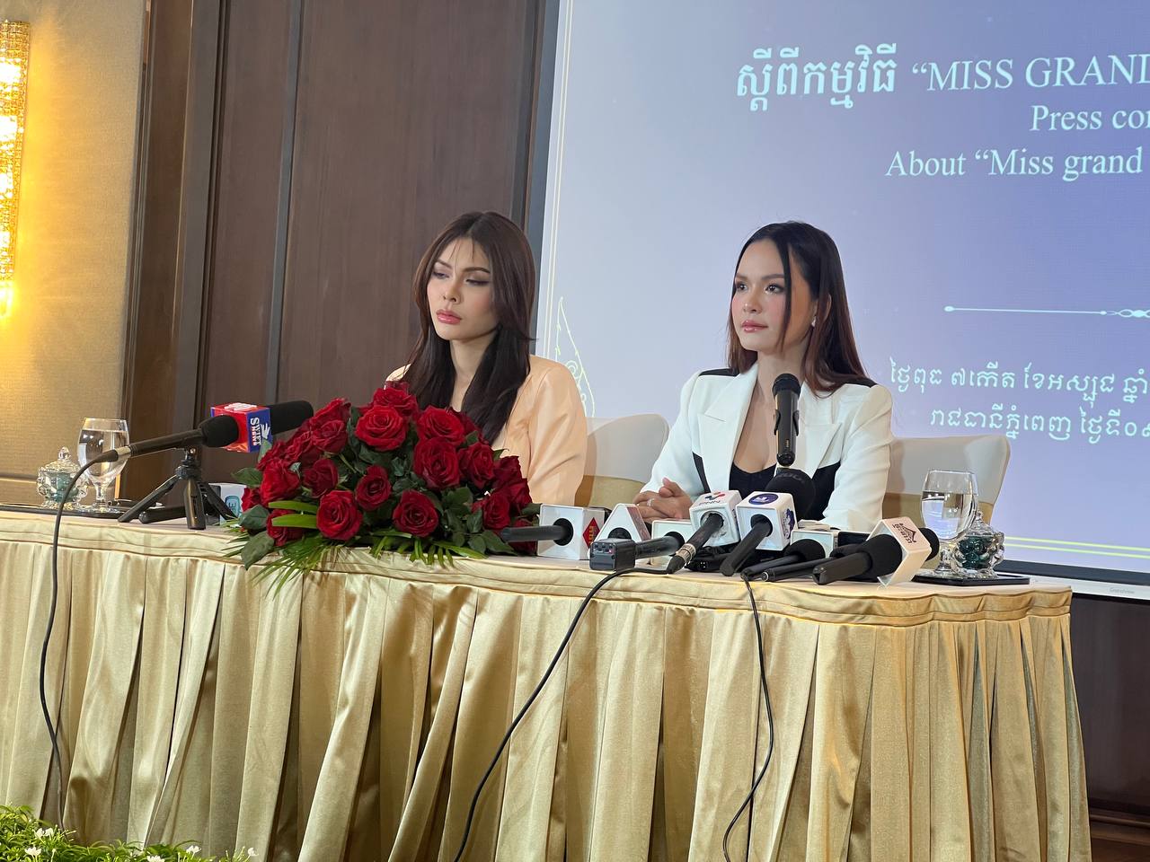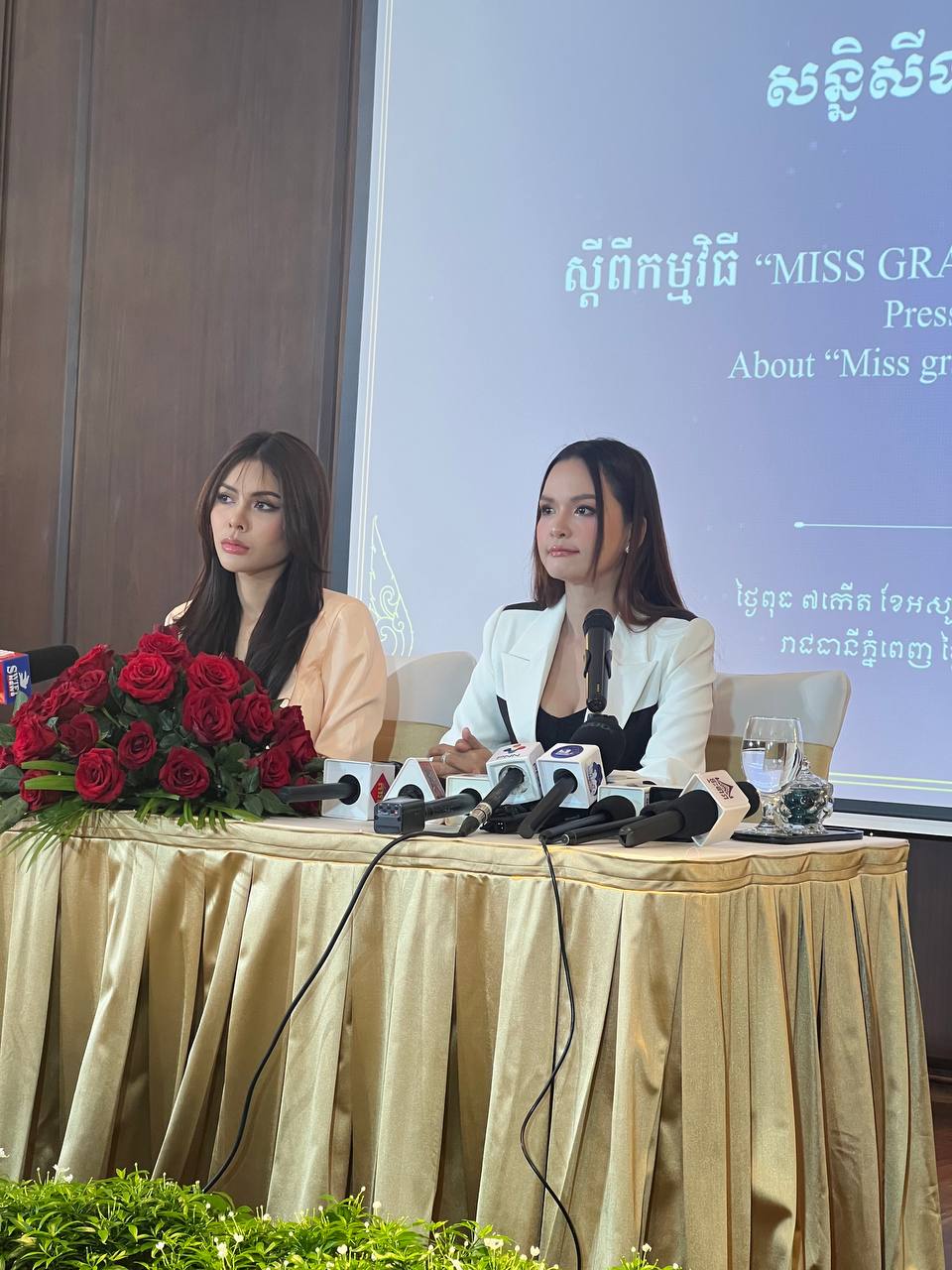 ក្នុងកម្មវិធីសន្និសីទកាសែតនាព្រឹកនេះ អ្នកស្រី អ៊ឹម សុគន្ធា បាននិយាយបកស្រាយបញ្ហាចម្រូងចម្រាសជាច្រើនរវាងក្រុមហ៊ុន HK7 និងស្ថាប័ន MGI។ ក្នុងនោះមានអ្នកសារព័ត៌មានម្នាក់សួរពីដំណើរការបញ្ហាប្រទាក់ក្រឡាគ្នាមិនឈប់រហូតដល់ដកសិទ្ធិកម្ពុជាពីសហម្ចាស់ផ្ទះ និងក្រុមហ៊ុនអ្នកស្រីក៏ផ្ដាច់អាជ្ញាប័ណ្ណជាមួយស្ថាប័ន Miss Grand International ដូចគ្នា។