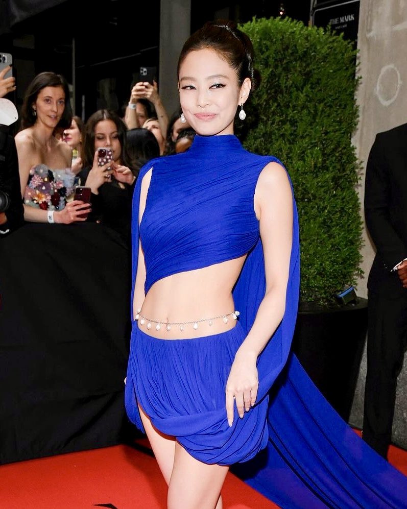 សម្រាប់រ៉ូបរបស់ Jennie ស្លៀកនៅ Met Gala ឆ្នាំនេះ គឺត្រូវបានរាយការណ៍ថា ធ្វើការច្នៃម៉ូតរហូតដល់ទៅ ២០០ ម៉ោង។ រូបពណ៌ខៀវនេះ ជាម៉ូតថ្មីចេញក្នុងឆ្នាំ ២០២៤ ច្នៃដោយ​អ្នក design ល្បី Pieter Mulier ស្ថិត​ក្នុង Alaïa Fall 2024 Collection។ បង្ហាញខ្លួនភ្លាម នាងត្រូវបានគេលើកឡើងស្រស់ស្អាត ថ្លៃថ្នូរ និងមានអំណាចដូចមាតាសមុទ្រ “The Goddess of The Sea”។