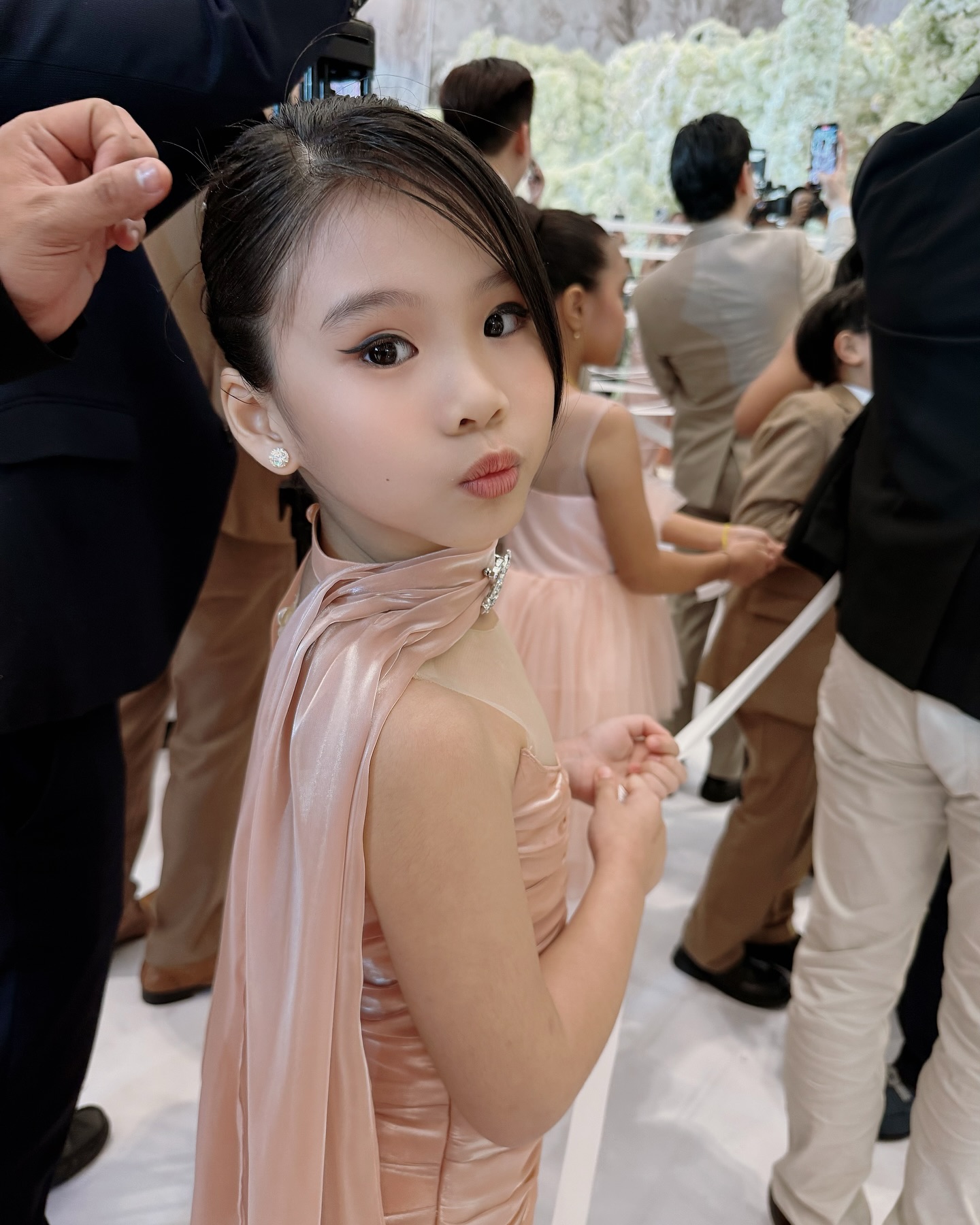 រ៉ូបចោមពង និងស្បៃបង់កទៅក្រោយដោយដាក់កន្លាស់ Chanel ដ៏ភ្លឺចិញ្ចាចមួយទៀត ឃើញហើយធ្វើឲ្យមិនសរសើរមិនបានពីការរើសម៉ូដ ក៏ដូចជាពណ៌ស៊ីនឹងសាច់ក្មេងស្រីរូបនេះតែម្ដង។ មិនអស់ត្រឹមប៉ុណ្ណេះឡើយ ម៉ូម៉ូ បានបន្ថែមកាបូបតូចមួយ កាន់ជាប់ដៃជានិច្ច រួបថតមួយណាក៏មើលហើយមិនចេះជិនណាយដែរ៕